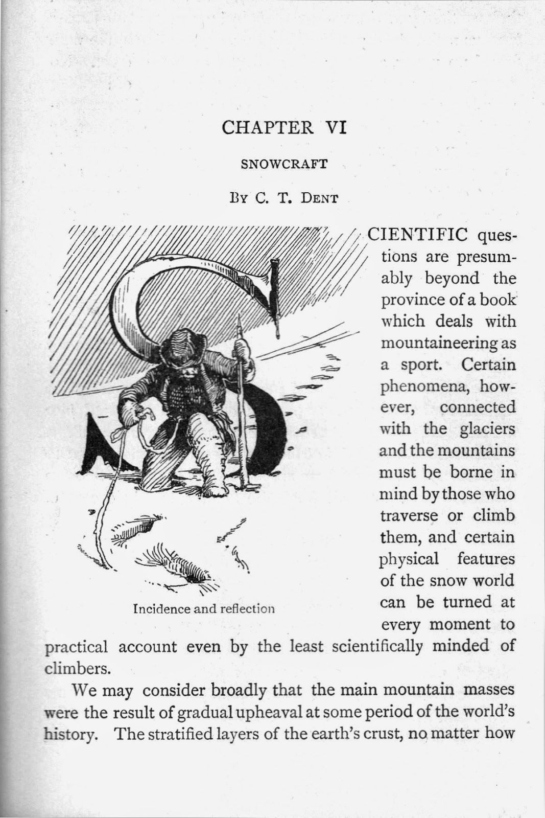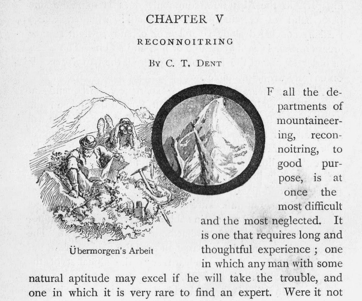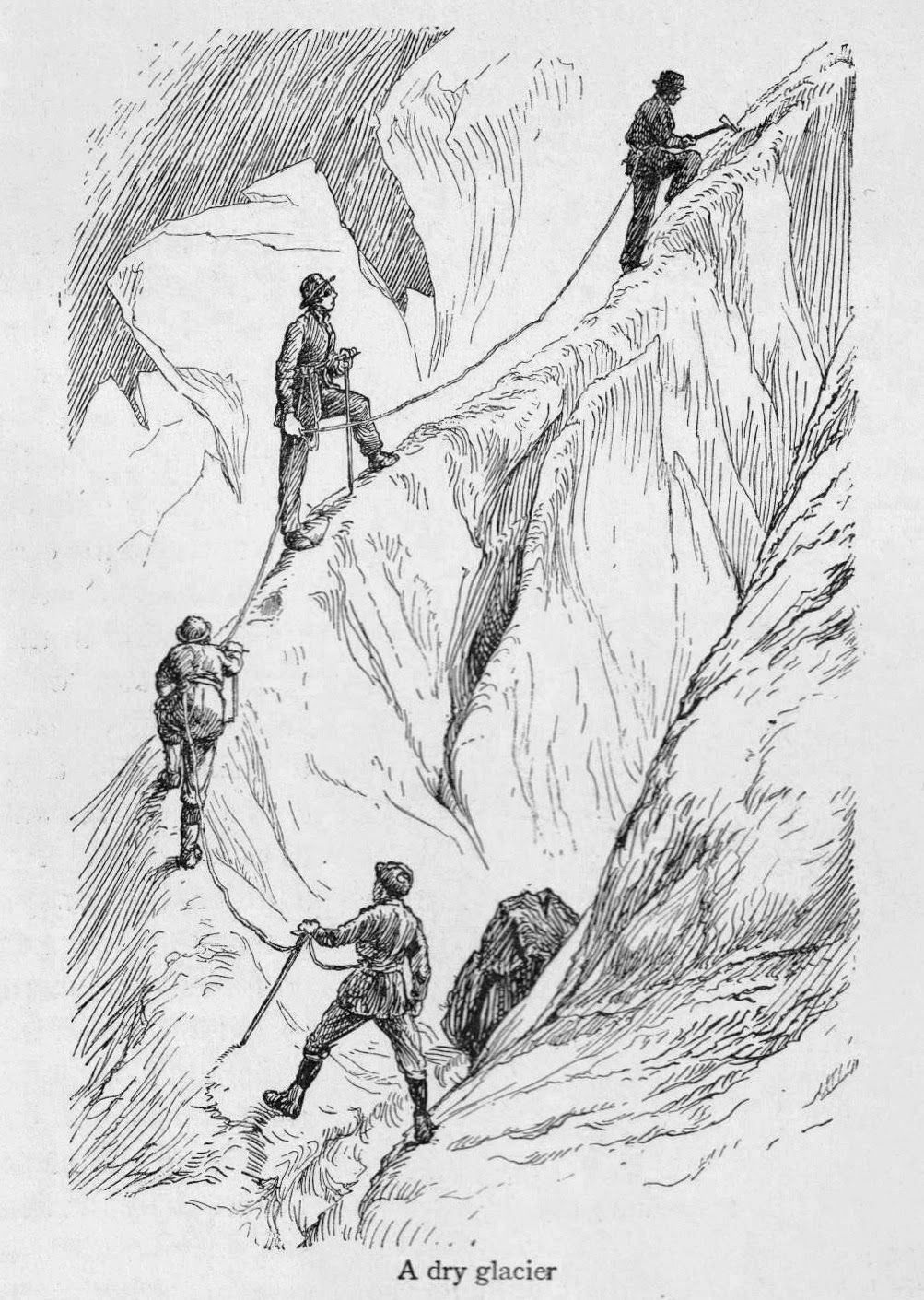 Today I’d like to share some beautiful illustrations with you. One of my most prized books is the Badminton Book of Mountaineering, a massive tome of 19th century climbing lore compiled by C.T. Dent and published in 1892. It features contributions from the greatest climbers of the post-golden age era, including W.M. Conway, D.W. Freshfield, C.E. Mathews, and C. Pilkington.