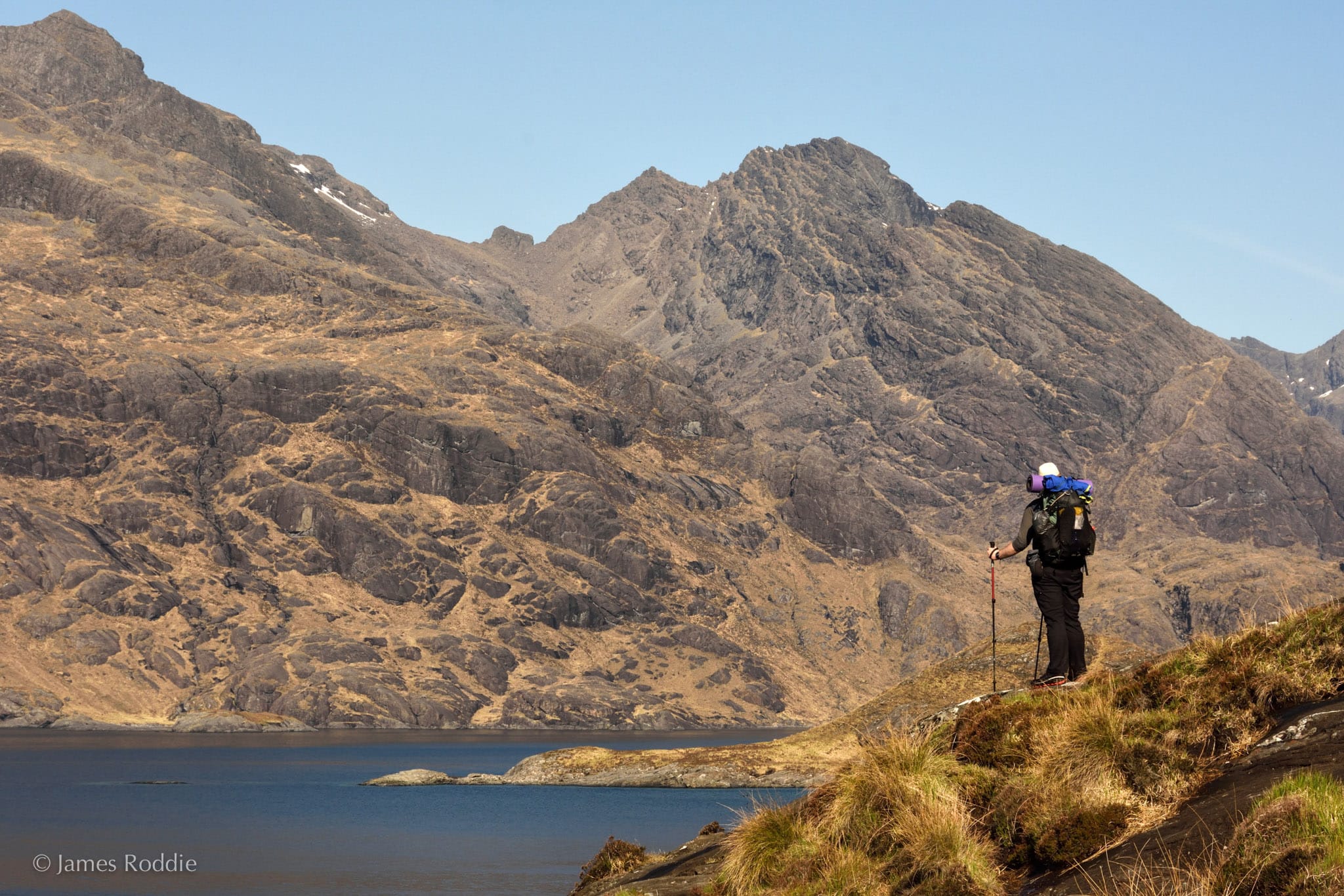 After overcoming exposed but straightforward scrambling moves on the Bad Step, we entered the hidden bowl of Coruisk. The heat was now so oppressive that we crashed on the banks of the river for a while. The motorboat had disgorged its cargo of passengers onto the beach, and now families scampered all over the rocks about us, the children paddling in the water and skipping stones. I often prefer to be alone in the mountains, but this time it felt right that other people should be here enjoying this incredible place. Those children will go home and remember their sunny afternoon in Coruisk. Perhaps they will grow up to be adults with an active interest in protecting the wild places they have enjoyed.
