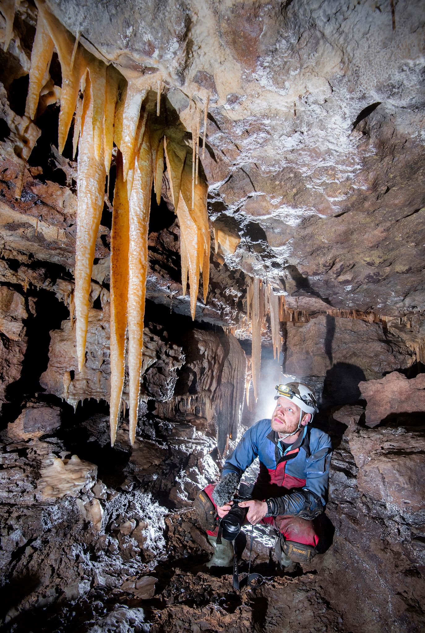 In addition to exploring James’s journey in mental health and his eating disorder, the film is also an exploration. Caving is the final frontier of undiscovered terrain in the British Isles. New caves are being discovered all the time, and many caves are vast, stretching for miles underground. Pristine beauty can be found there by those with the skill (and those who aren’t bothered by mud and confined spaces). Professional photographers rarely venture underground, and James wanted to create high-quality images – the first to his knowledge – from these caves. The seeds of an ambitious project were sown.