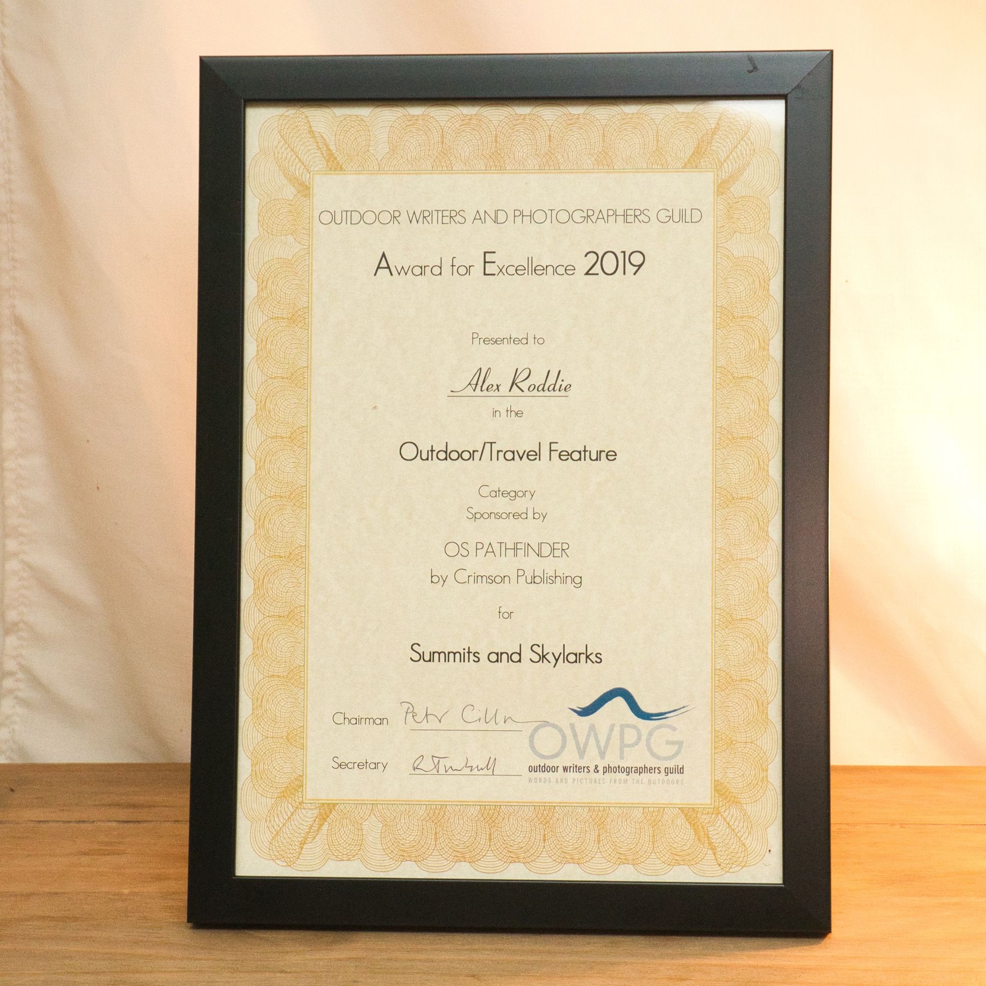 OWPG Award for Excellence for my TGO magazine feature ‘Summits and Skylarks’