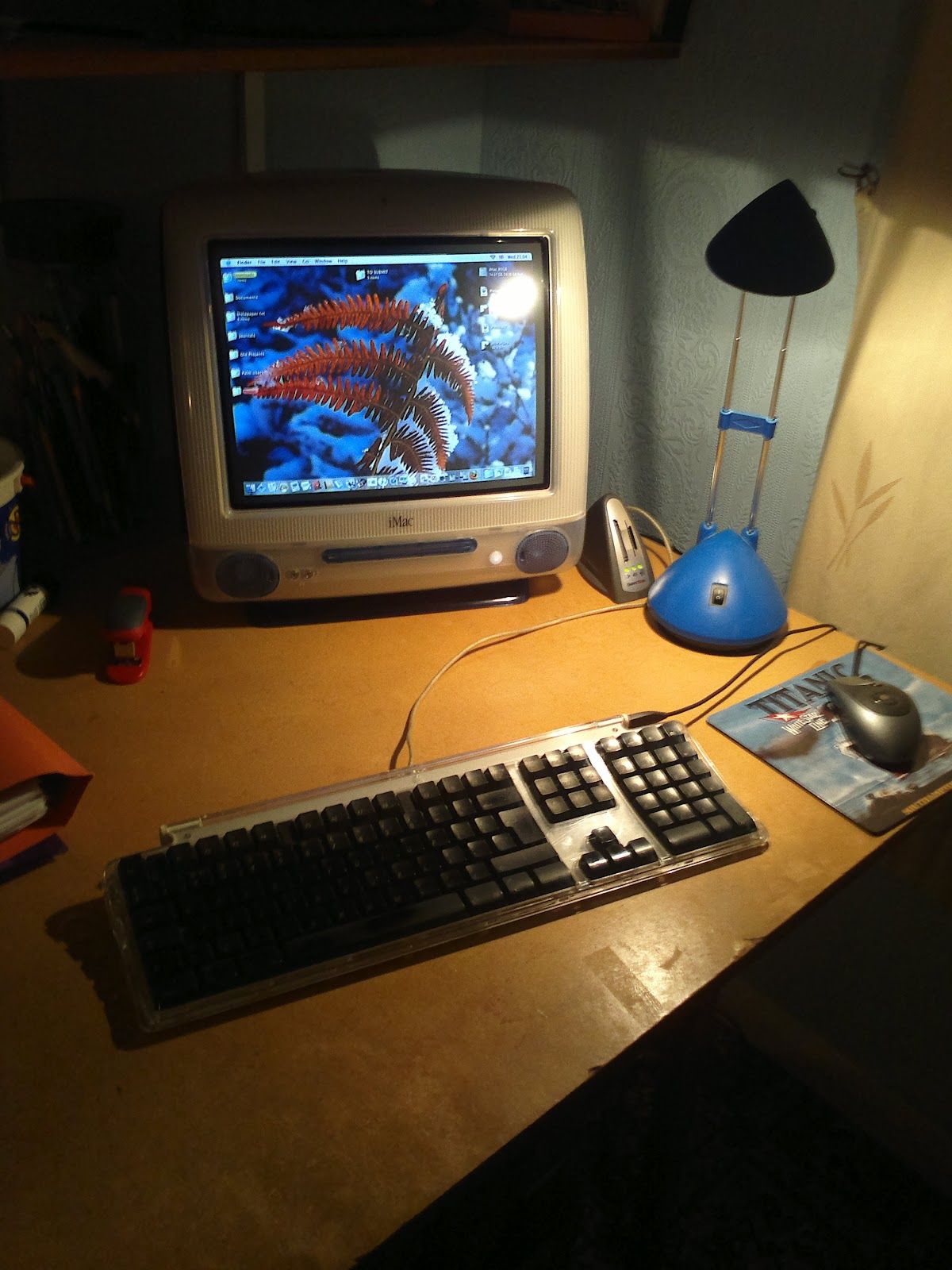 | The old iMac G3. I wrote hundreds of thousands of words on this machine between 2002 and 2010–and it’s still going strong! |