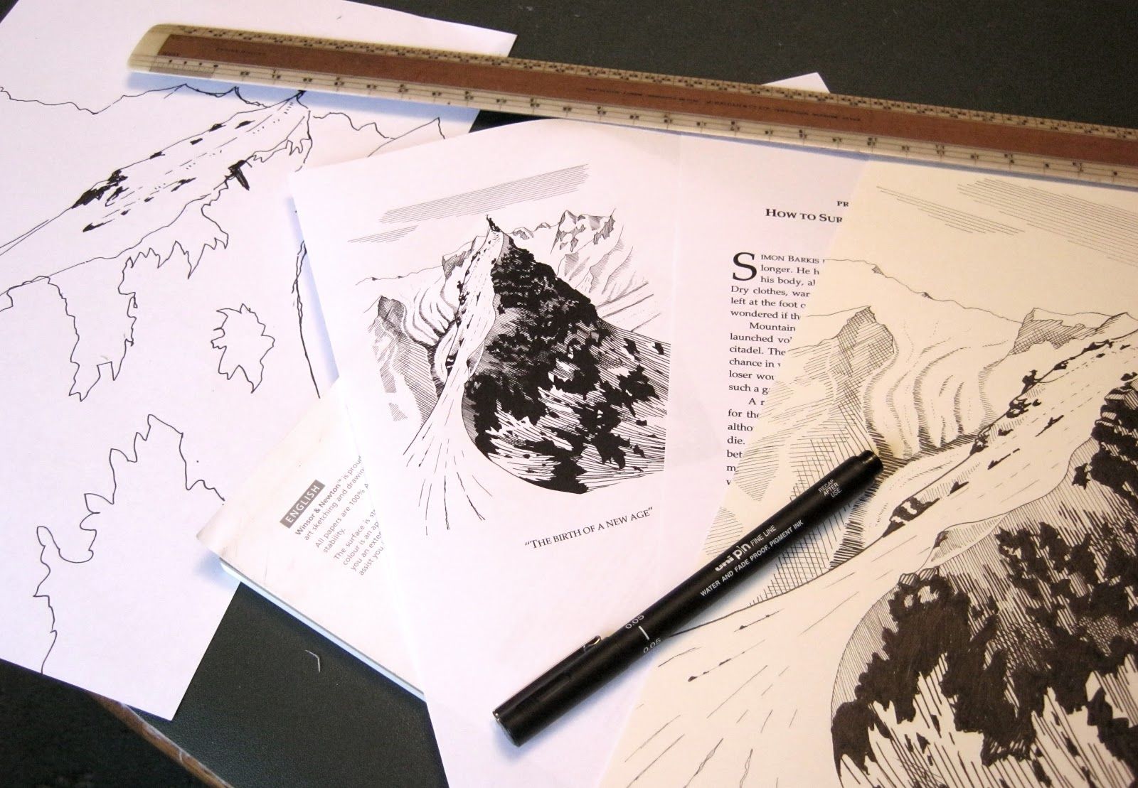 Anyway, part of the joy of this process is that I get to illustrate my own book! I’ve used drawing and painting as a creative outlet for most of my life, and in recent years have completed several pieces of mountain artwork, so it makes sense for me to do the illustrations instead of paying someone else to do it.