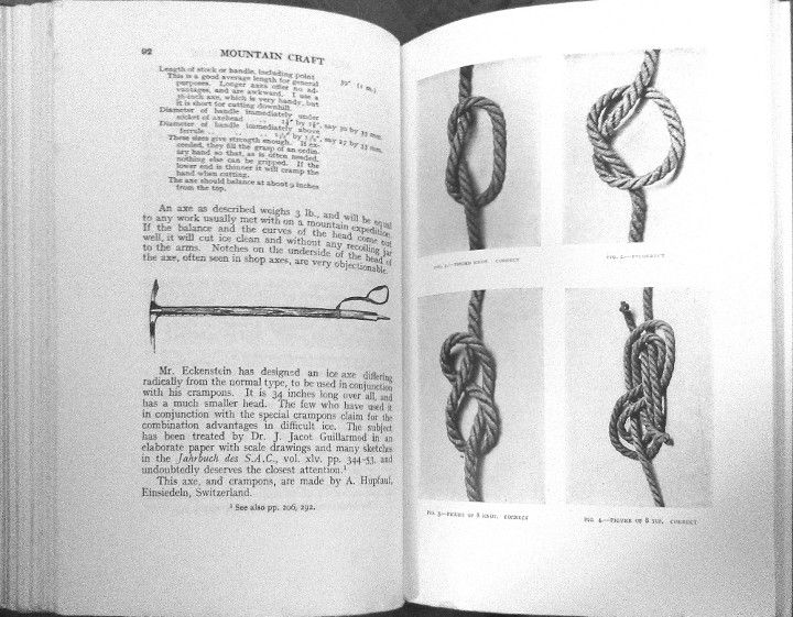 My parents managed to find two books that I’ve been seeking for several years. The first is Mountain Craft by Geoffrey Winthrop Young, first published in 1920. This book was compiled from articles written by many leading mountaineers of the period, and can be viewed as the distillation of all mountaineering wisdom from the late 19th and early 20th centuries. The impact of this book cannot be overstated. Similar projects had been undertaken before (ie. the Badminton Library volume on mountaineering), but never before on this scale and with this level of authority and confidence; in addition, previous books often relied heavily on opinion and tended to be light on facts backed up by evidence.