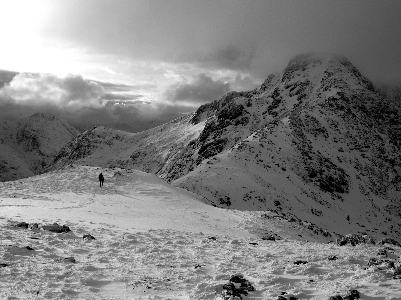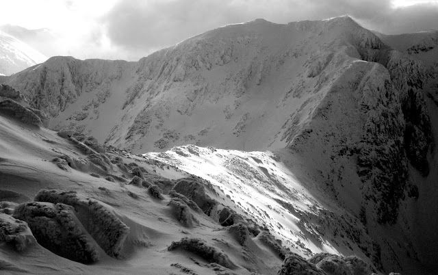 | The Monarch of Glencoe: sunlit ridge, windswept pinnacle, and dark abyss. |