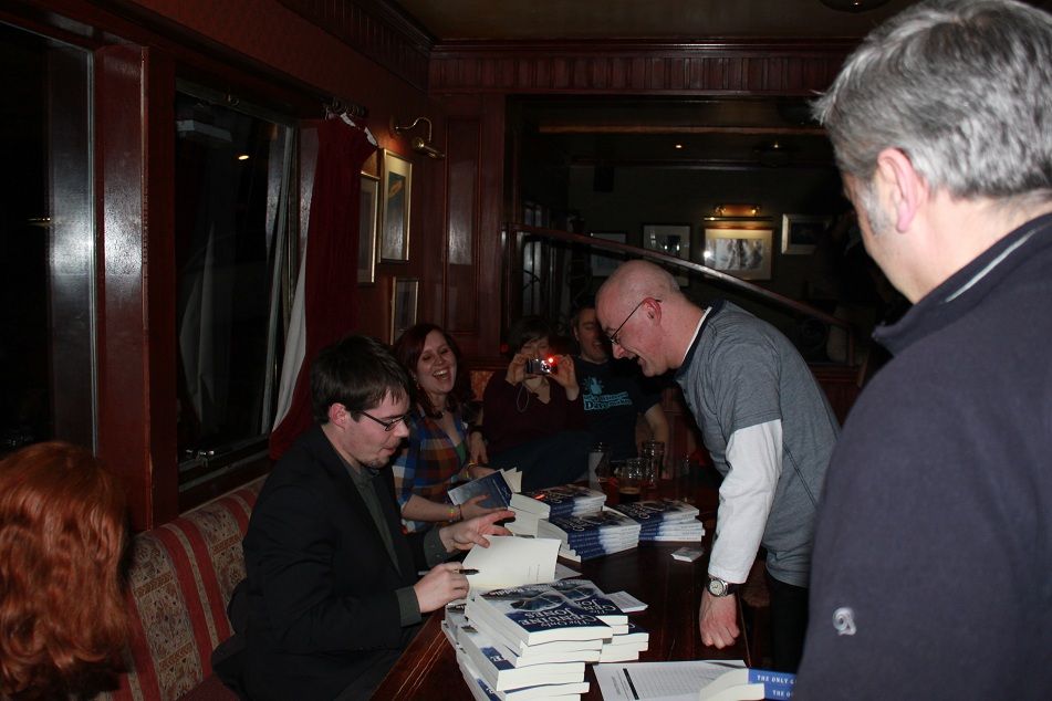 Plenty of people unable to attend the launch have ordered signed copies, and as of tomorrow I will begin to fulfil those orders. If you have reserved a copy but not yet paid for it, the books are £7.99 plus £2 postage and I accept either PayPal or direct bank transfer; email me and we’ll get it sorted out. I currently have enough stock to fulfil all existing orders although it’s going to run out pretty quickly. After next week I will have to order another print run before I can accept new orders for signed copies.
