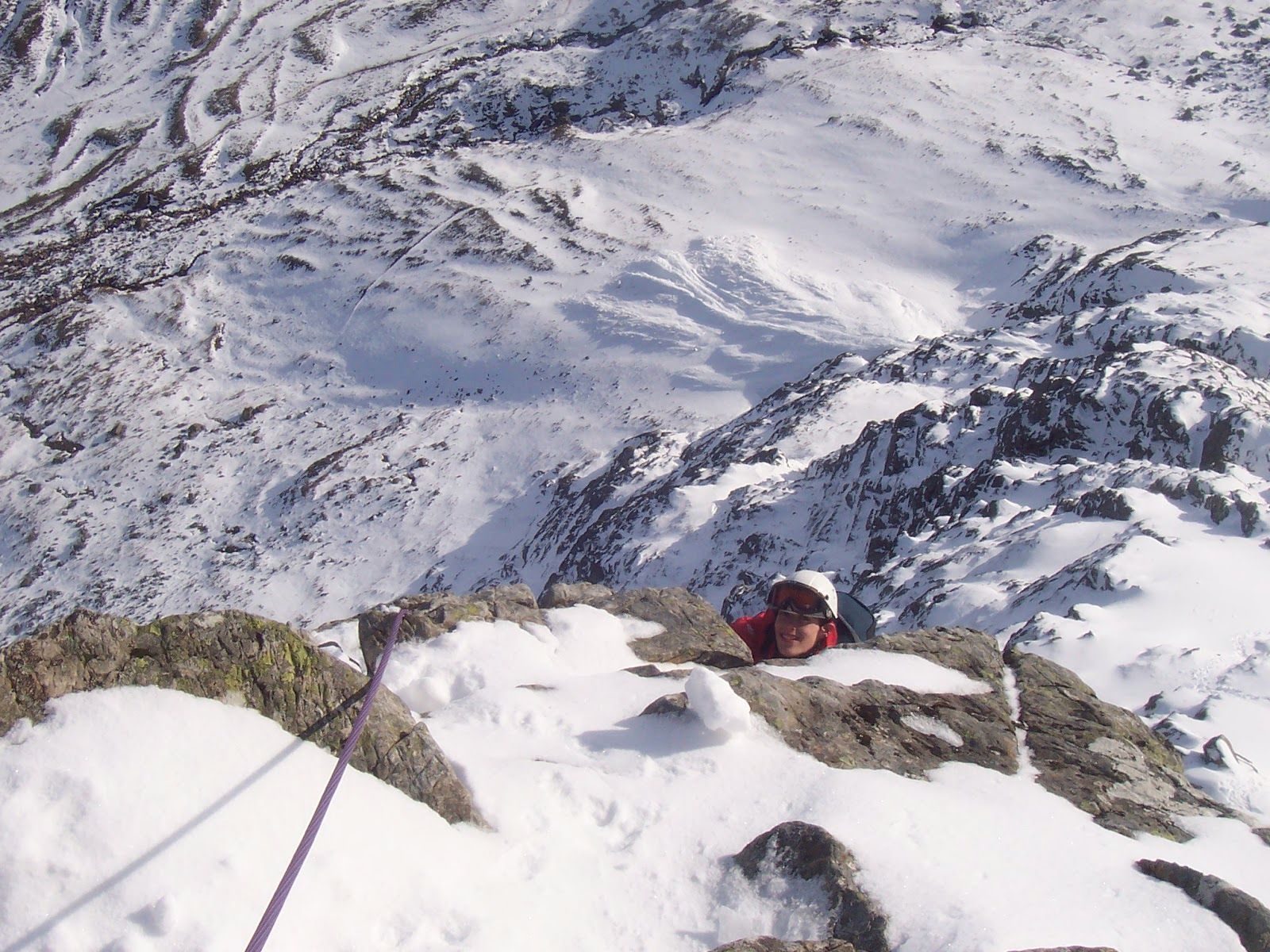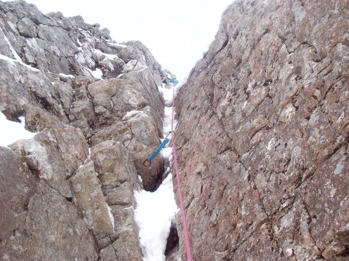 However, aid climbing became more acceptable in the mid 20th century. If a route was too hard to climb without resting on gear, or using some novel rope trick to cross a barrier, the first ascentionists would not hesitate to use whatever tactics they thought best. However, it was considered vital to declare if any points of aid were used. Many of these routes were climbed ‘free’ by other climbers in future years. A good example of this is Point 5 Gully, which was first climbed siege-style in 1959 and then repeated in a single push by Robin Smith and Jimmy Marshall in 1960.