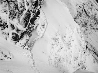 | Part of the crown wall at the top of the face. The slabs of snow broke away from this point. |