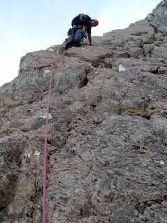 | Me leading the razor arete on the third recorded ascent of Shrike Ridge in June 2010 |