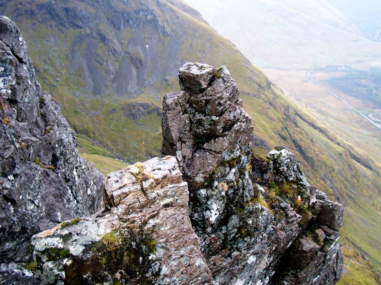 In 2008 I became cragfast while descending Dinnertime Buttress. I had spent over an hour helping a lost walker on the summit of Bidean and was late for work, so was hurrying in my descent of this easy scramble. A combination of poor visibility and ice on the rocks caused me to lose my way, and I found myself wedged into a funnel-shaped chimney, unable to move! It would have been funny if it hadn’t been so frightening, and it took me almost an hour to extricate myself (which I succeeded in doing by removing my rucksack and dropping it down a ravine). Needless to say, I was late for the start of my shift.
