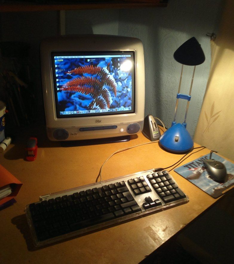 Then the relentless march of the Web finally came knocking on our door, and shortly after the turn of the century we got dialup at home. From 2001 we had an iMac desktop computer which I shared with my younger brother, and this new, shiny machine was packed with games and a Web connection that worked after a few moments of Ping-ping-beepdy-beepdy-crunchcrunchcrinkle-beepdy-ping.