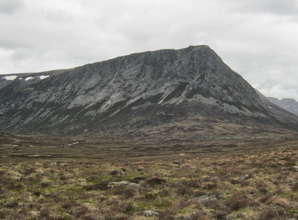 | Bod an Deamhain, the “southern bastion of the Braigh Riabhach massif” beneath which Forbes and Carr make their camp one night. |