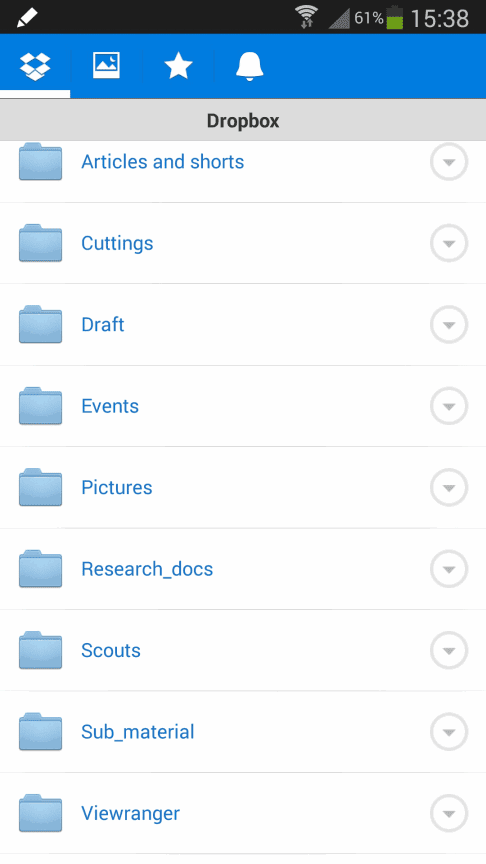 In the first blog post in this series, I discussed some of the key apps I use on my Android devices to help make my job easier. I looked at Evernote, Google Drive, and Draft. These are no-nonsense, practical tools for creating content and storing information, and I commend them to every Android-equipped writer. However, I’ve found that in the months since writing the blog post, my habits have changed. I’ve come to rely more on Dropbox and Draft and less on Google Drive and Evernote.In this post I will be taking a look at some of the other apps I use on a daily basis as a writer, this time focusing on the peripheral tasks essential to an author’s daily work. The apps I have chosen to write about today are Dropbox, Afterword, Play Books, and Pocket.
