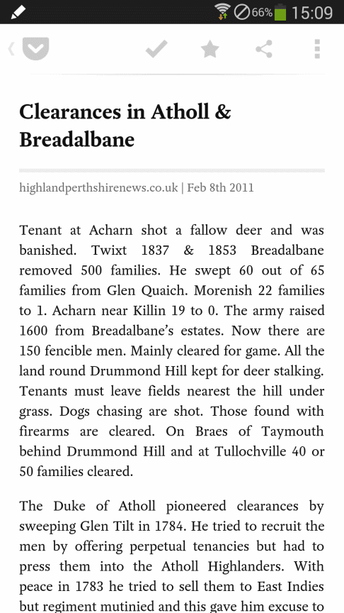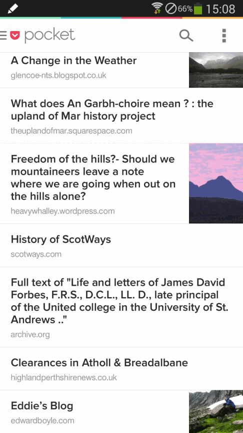The basic idea is that if you find an article on the Web you don’t have time to read right now, or simply want to save for later use (even when offline), you press the “pocket” button on your browser (or “Share to Pocket” on your Android) and the article will be waiting for you in the app when you need it.