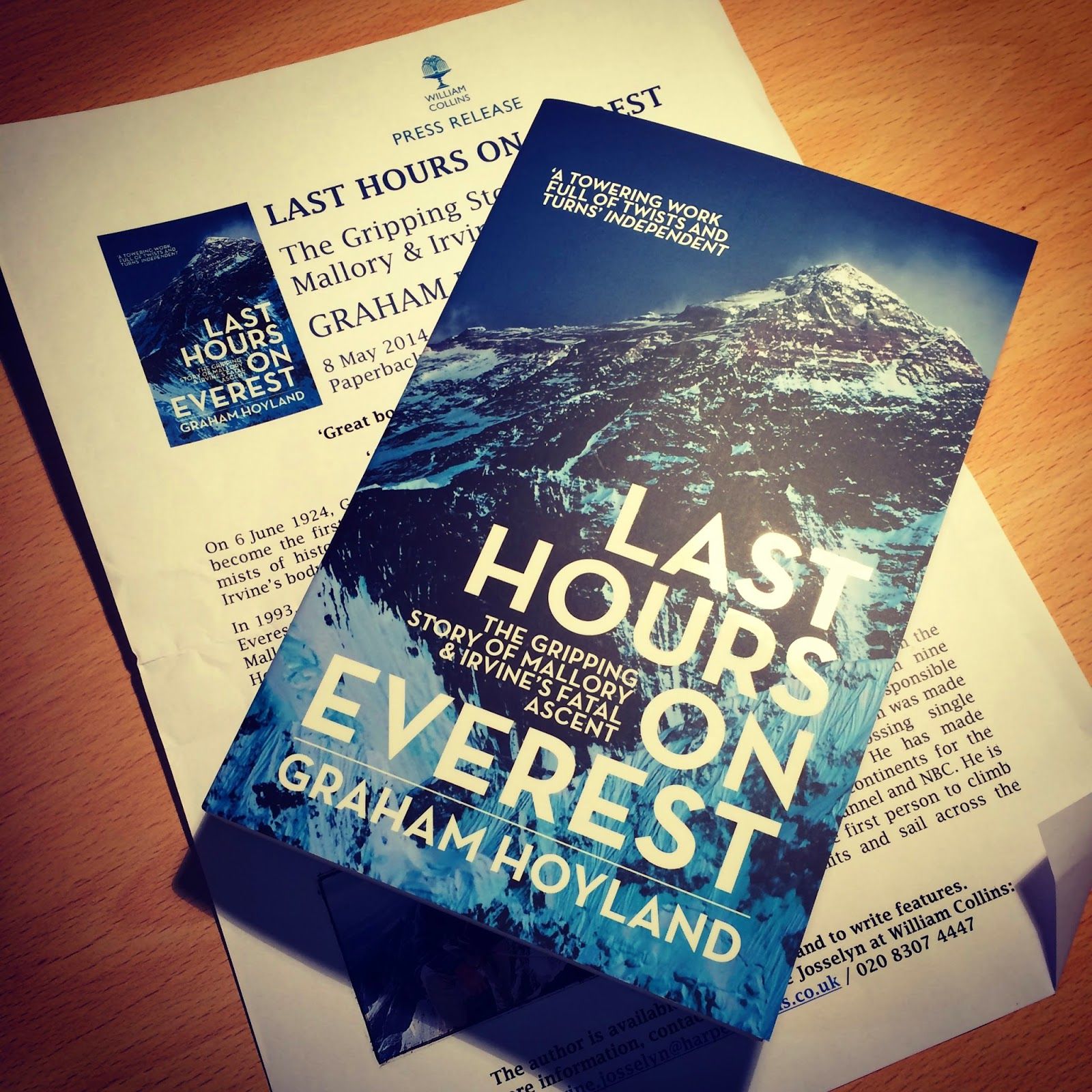 I came home from work to an eagerly anticipated package today. It contained an advance copy of Graham Hoyland’s new book, Last Hours on Everest, which has been available in hardback for a while but will be released as a paperback next month.