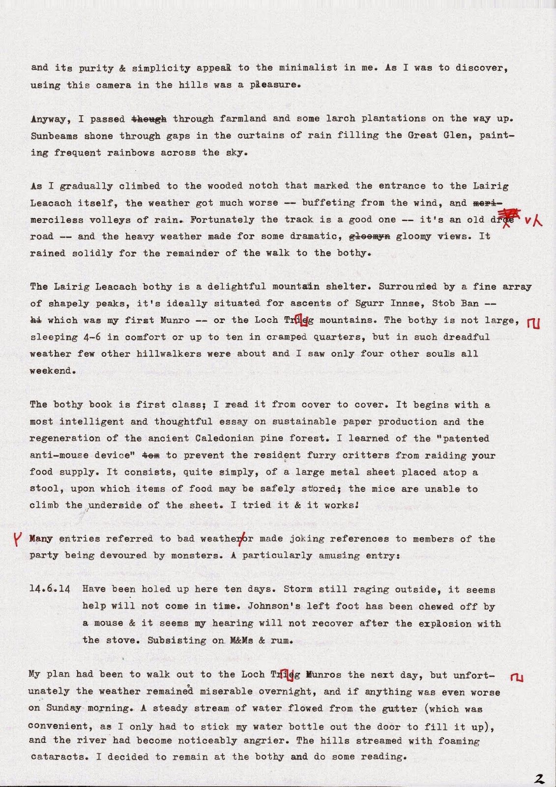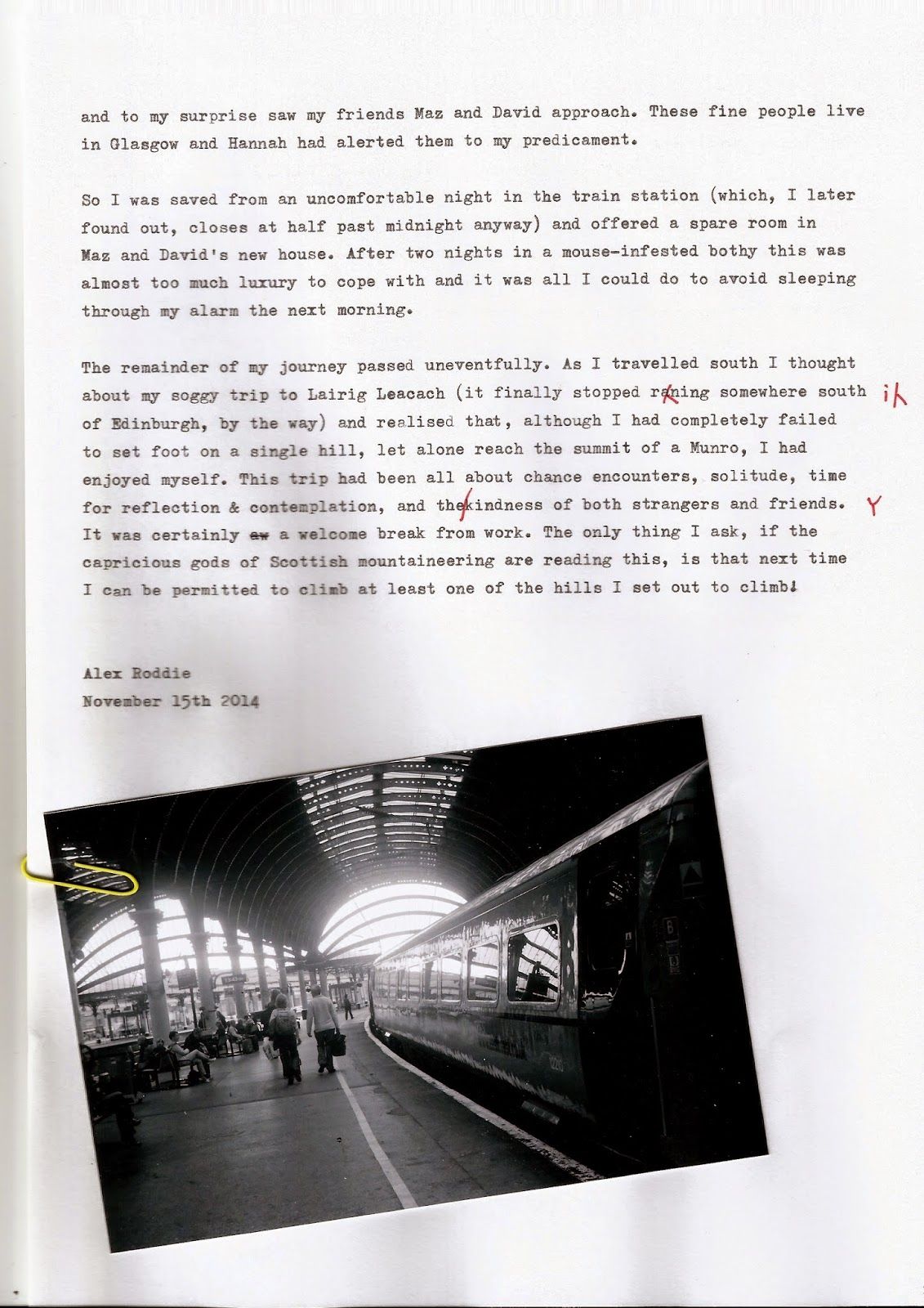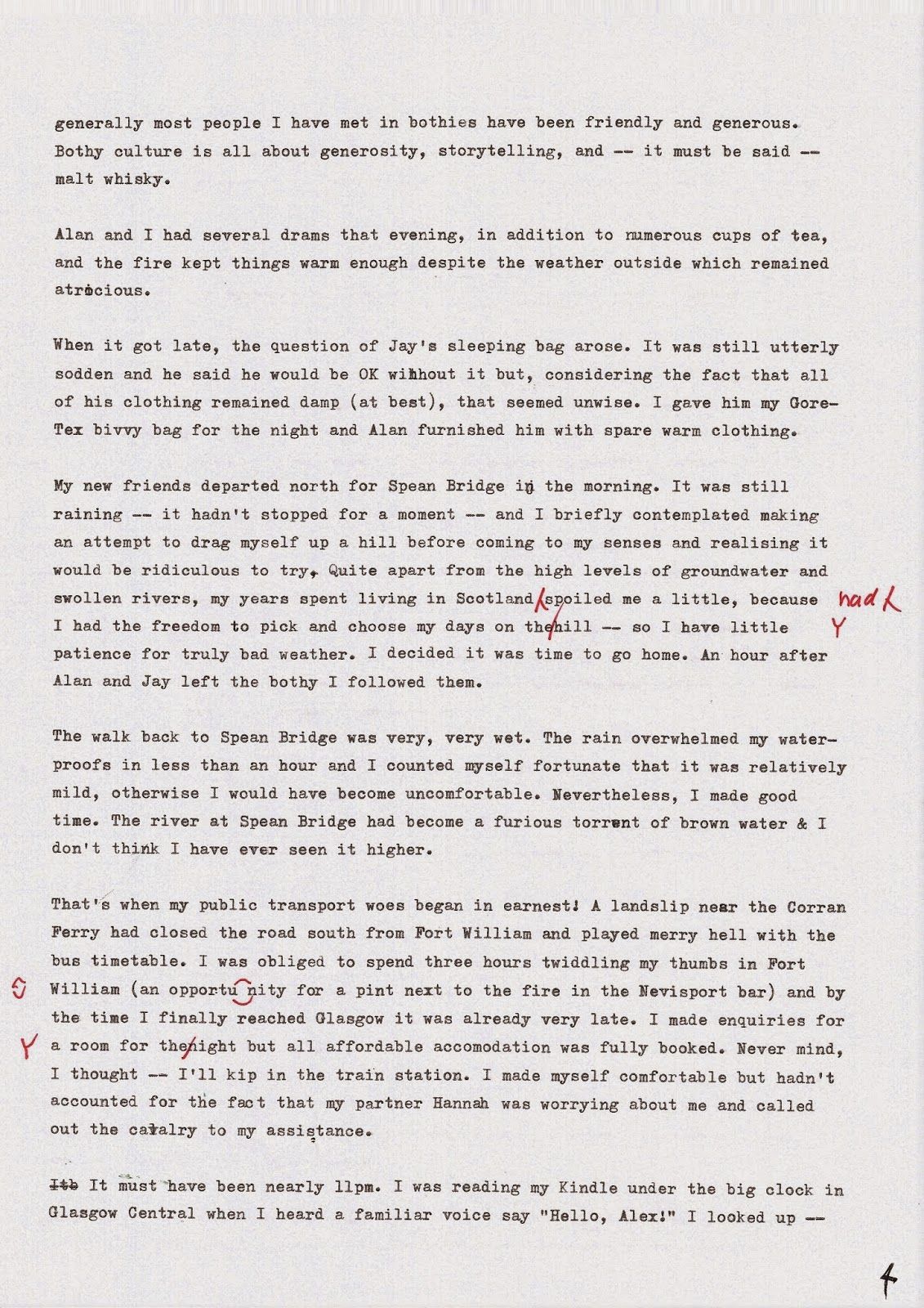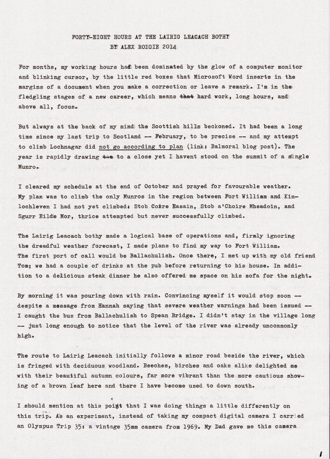 In a departure from my usual form for trip reports, I’m writing this one up as a typecast — that is, scans of pages typed on a manual typewriter. I used an analogue camera to take all the photos on this trip so it feels appropriate. I hope you enjoy this (much-delayed) trip report of a soggy journey to Scotland. Note: you can click on the links below each page to display a full-size version.