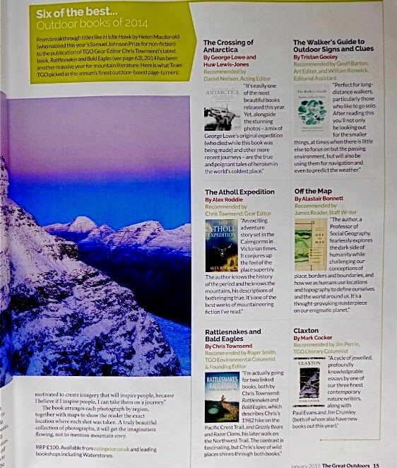 Second, the latest issue of TGO has mentioned The Atholl Expedition in an entirely distinct “Six of the best outdoor books of 2014” list. Unlike the Awards, this list was not compiled by a reader survey; titles were recommended by TGO writers and staff members. Chris Townsend, who is the Gear Editor of TGO (in addition to being a highly accomplished author in his own right), was kind enough to recommend Atholl for inclusion in the list.