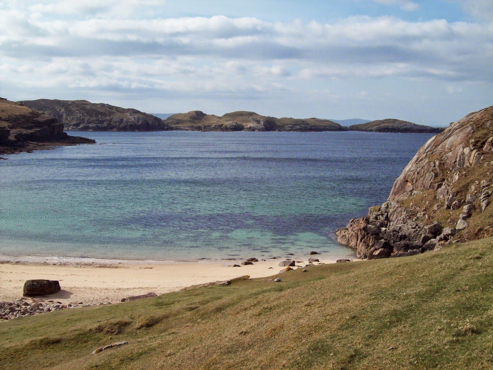 I did pass through it once. Isi, Jamie and I organised a cragging road trip out to Reiff and Sheigra, and as we drove through the sunny paradise of Assynt I found myself unable to look away from those towering, prehistoric mountains that reared like dinosaurs out of the jigsaw of lochans and peat, stretching for many miles away to the Atlantic.