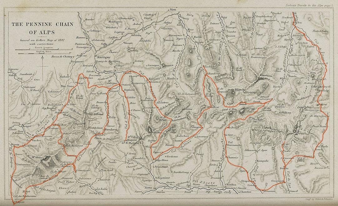 Regular followers of this blog will be aware that I admire the writings of James Forbes, a Scottish geologist best known for his pioneering studies on the glaciers of the Alps. I have written before about the long foot journey he conducted in 1842, and I’ve even followed the central portion of this route myself.
