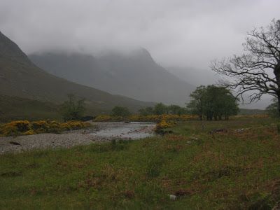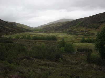 But I wanted to get a few more miles in before I called it a day. I left Knockdamph in the rain and continued along the track, entering Glen Einig before long. Glen Einig reminded me of the Yorkshire Dales with its wide open sheep pasture and drystone walls.
