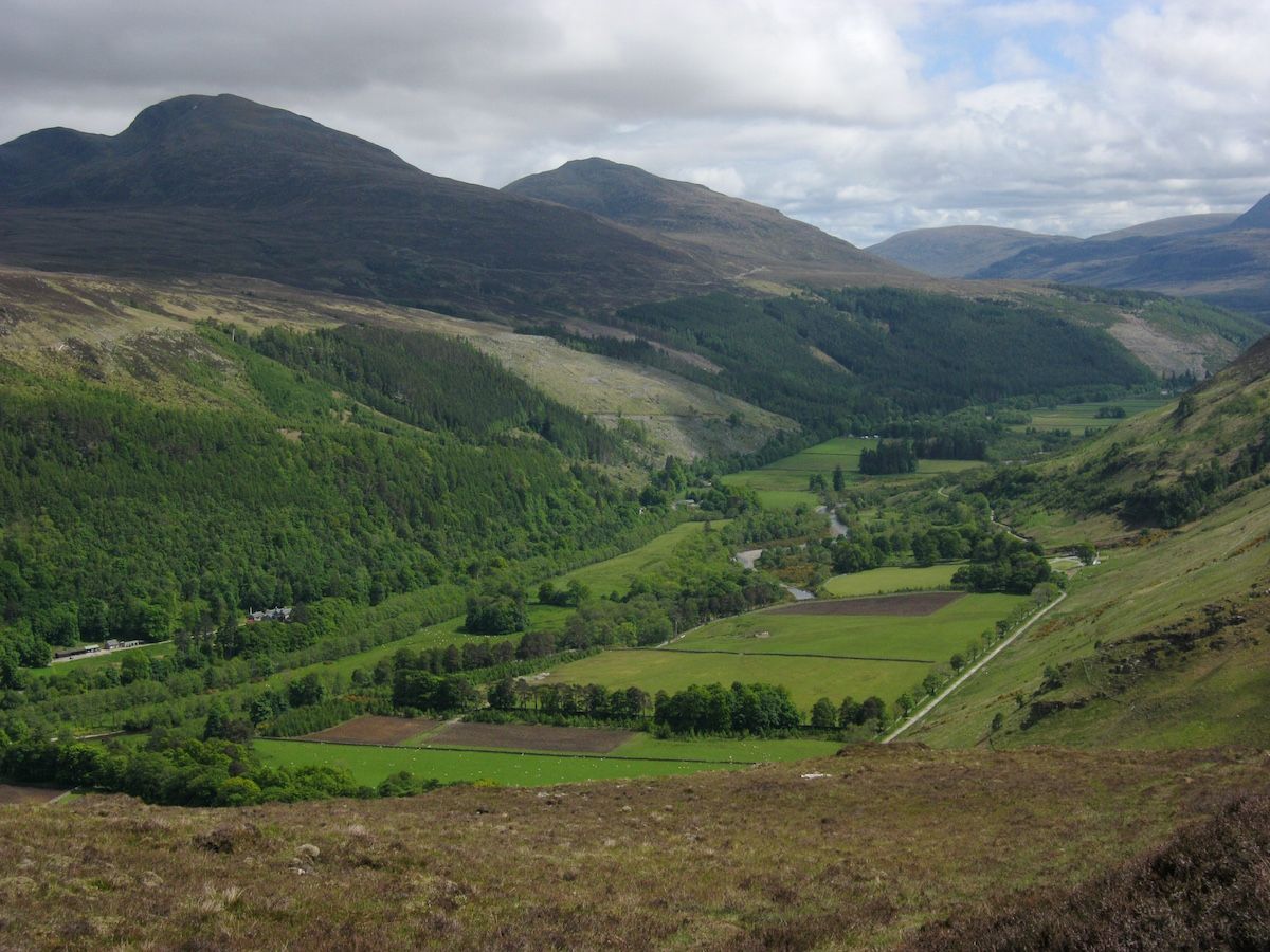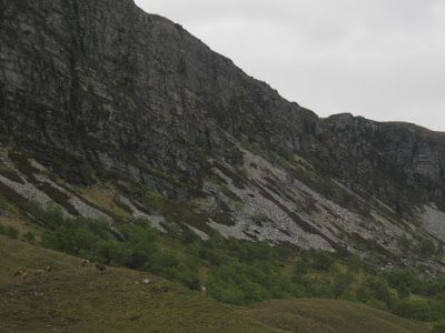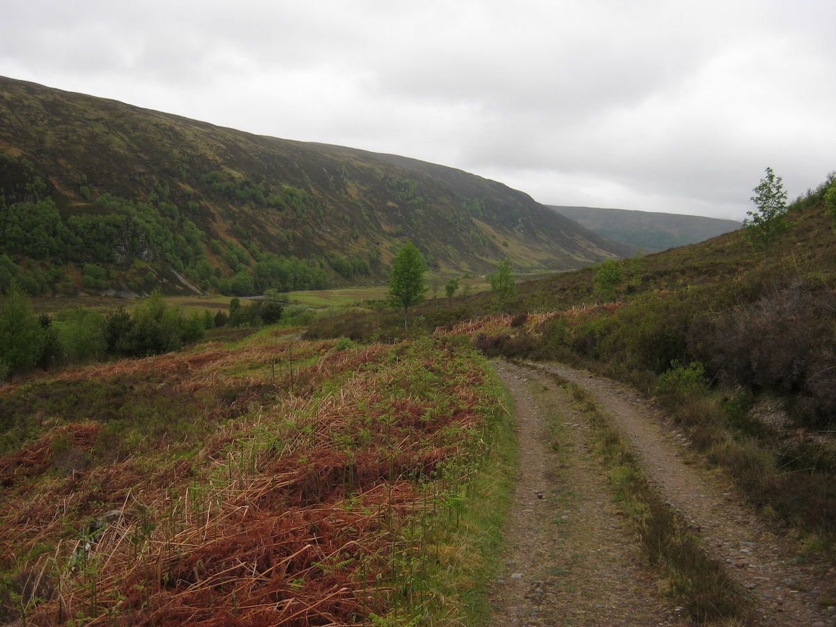 But I wanted to get a few more miles in before I called it a day. I left Knockdamph in the rain and continued along the track, entering Glen Einig before long. Glen Einig reminded me of the Yorkshire Dales with its wide open sheep pasture and drystone walls.