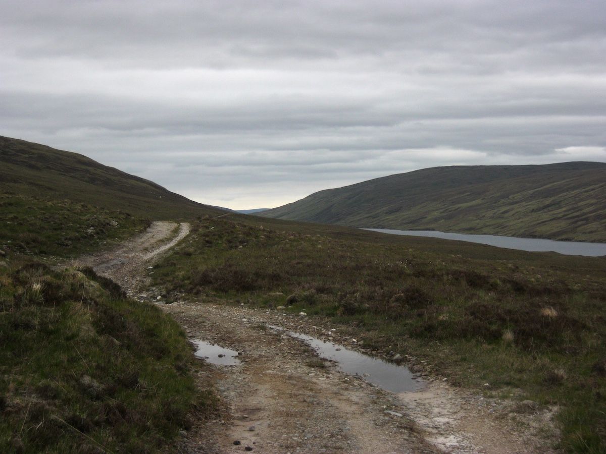 The weather remained dull and chilly as I walked. Gradually the terrain became less cultivated and more wild, and I made good time to Loch an Daimh. I spotted Knochdamph bothy and poked my nose in for a look, but found it creepy in the extreme – there was even an upstairs room with a rusty old Victorian bed still in situ!