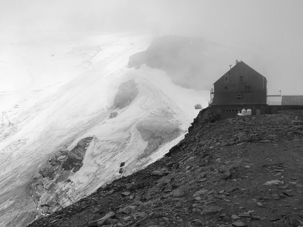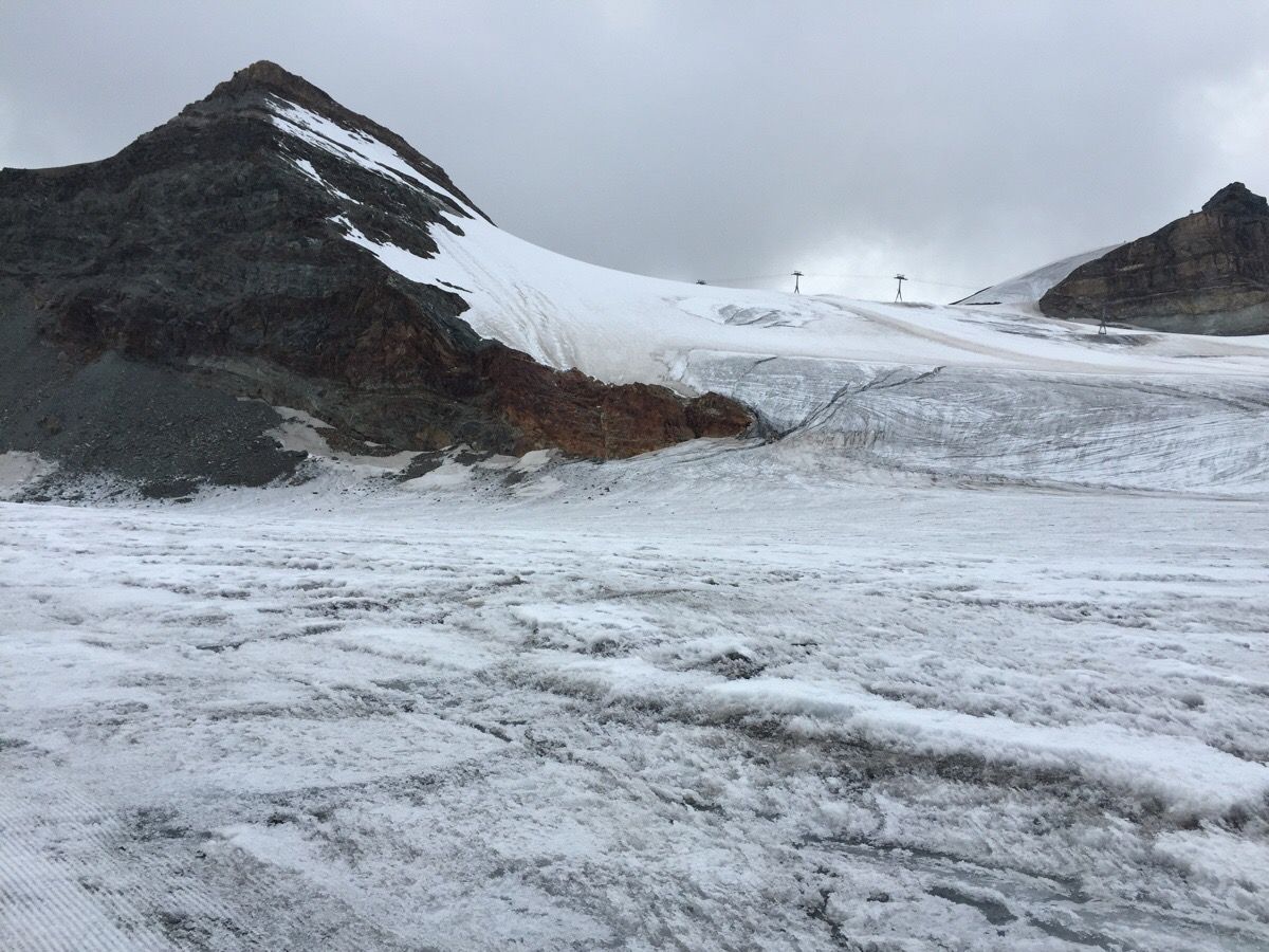 The western side of the Theodulpass is a weird landscape that looks a bit like a partially terraformed Lunar crater. The terrain is all bare jagged rock and gravel, carved up by access roads and strung with pylons and chairlifts. Every so often as I hiked through this silent wasteland I’d come across dystopian architecture: a windowless concrete tower of unknown utility, or a stark, metal-and-glass cable car terminus. It didn’t feel like I was in the mountains and I hurried through this ghostly place with my head down. There was no wildlife to be seen.