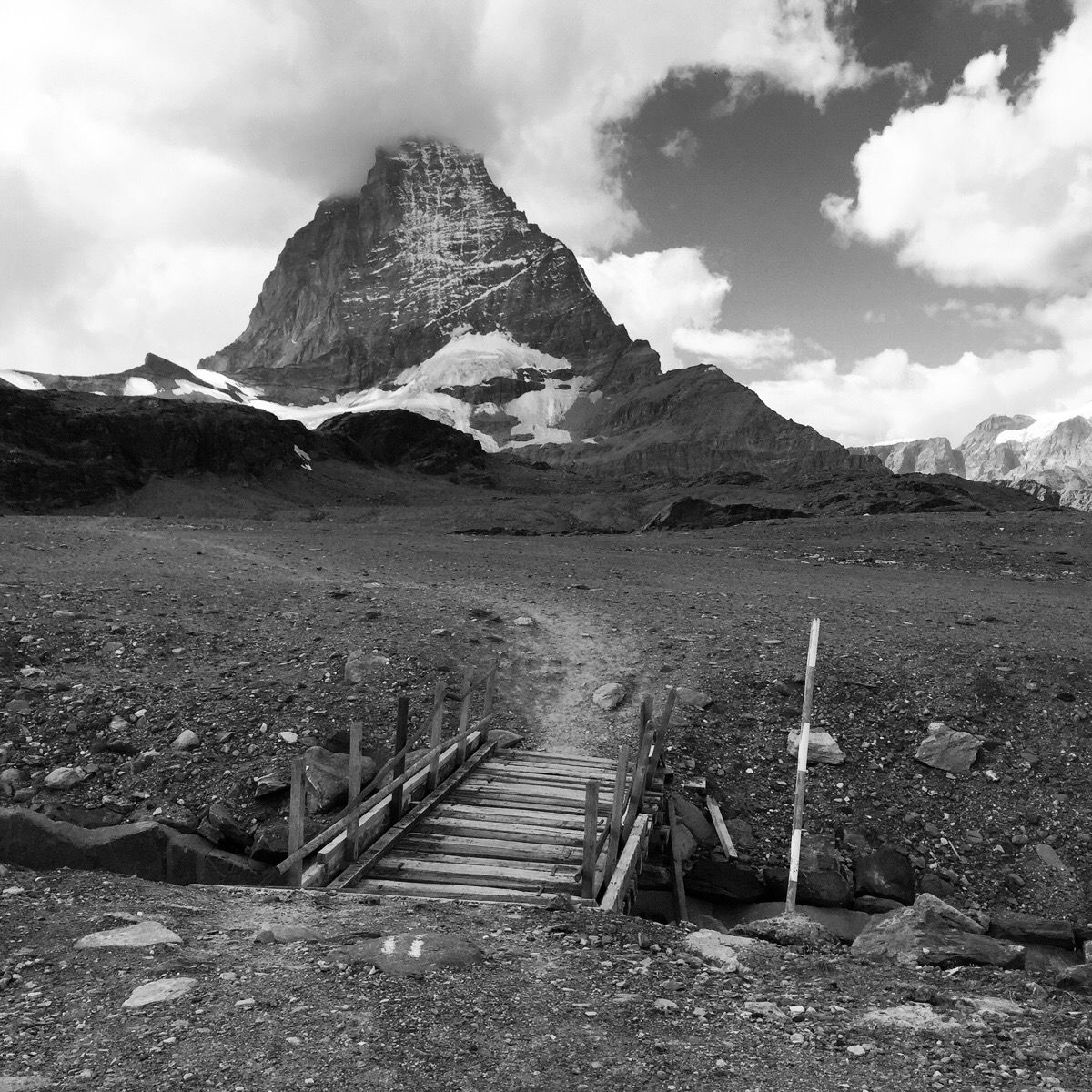 So I began the long, steep descent to Zermatt. There isn’t much to tell about this walk down – it seemed to go on and on, taking rough trails beneath cable cars and then winding lanes through hamlets of old timber buildings. Within a few hours I was walking through the streets of Zermatt and checked in at the campsite.