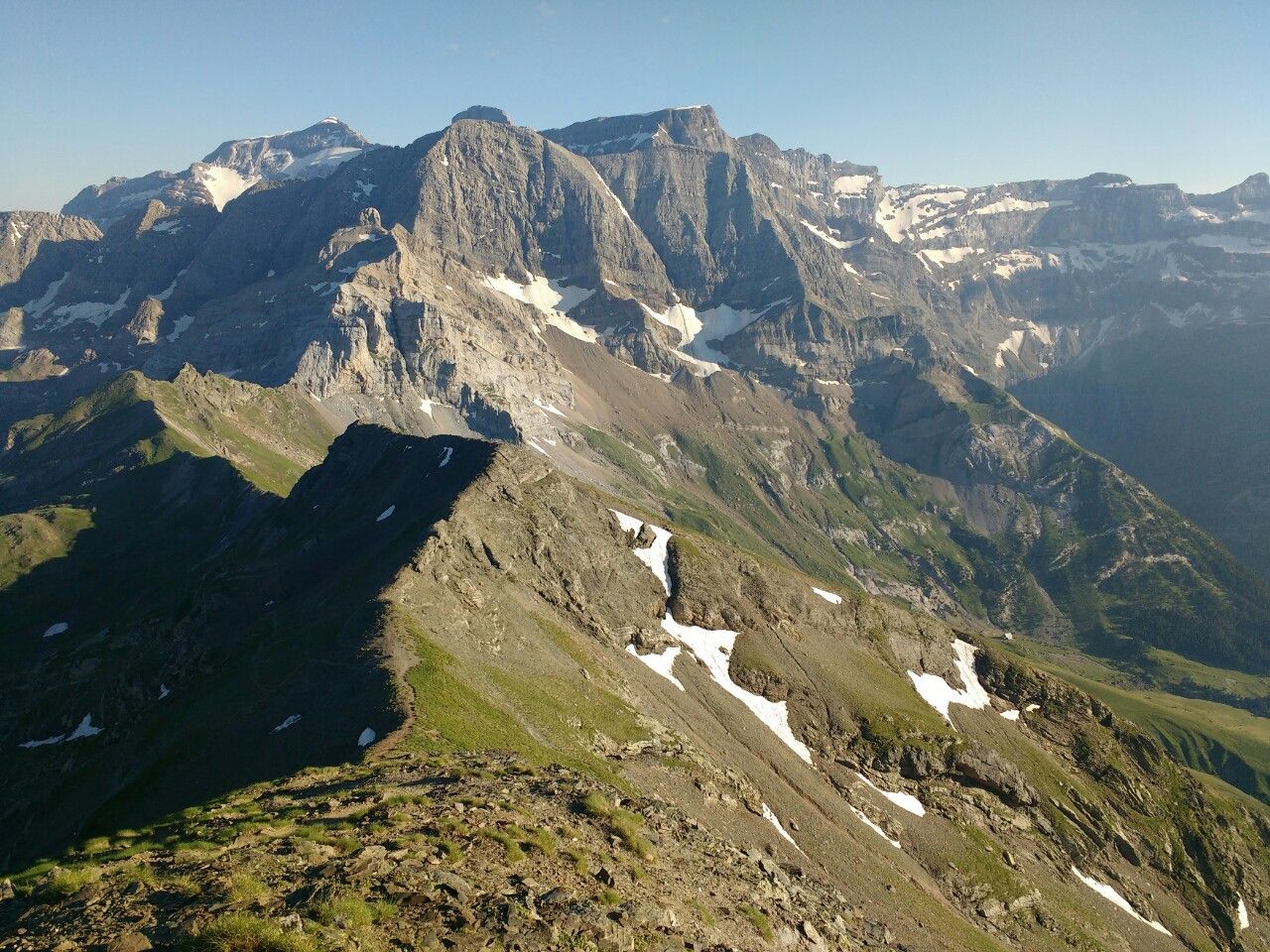 Pimene is all about the views; the climb itself is a bit scrappy, although that final scramble was a bit more exciting than expected, and reminded me a little of Sharp Edge on Blencathra. But the views, over the Cirque de Gavarnie and back to distant Vignemale, were stunning – and of course the rich evening light made everything look even better. On the other side of the mountain, I could look ahead and see the terrain I’d be tackling over the coming days.