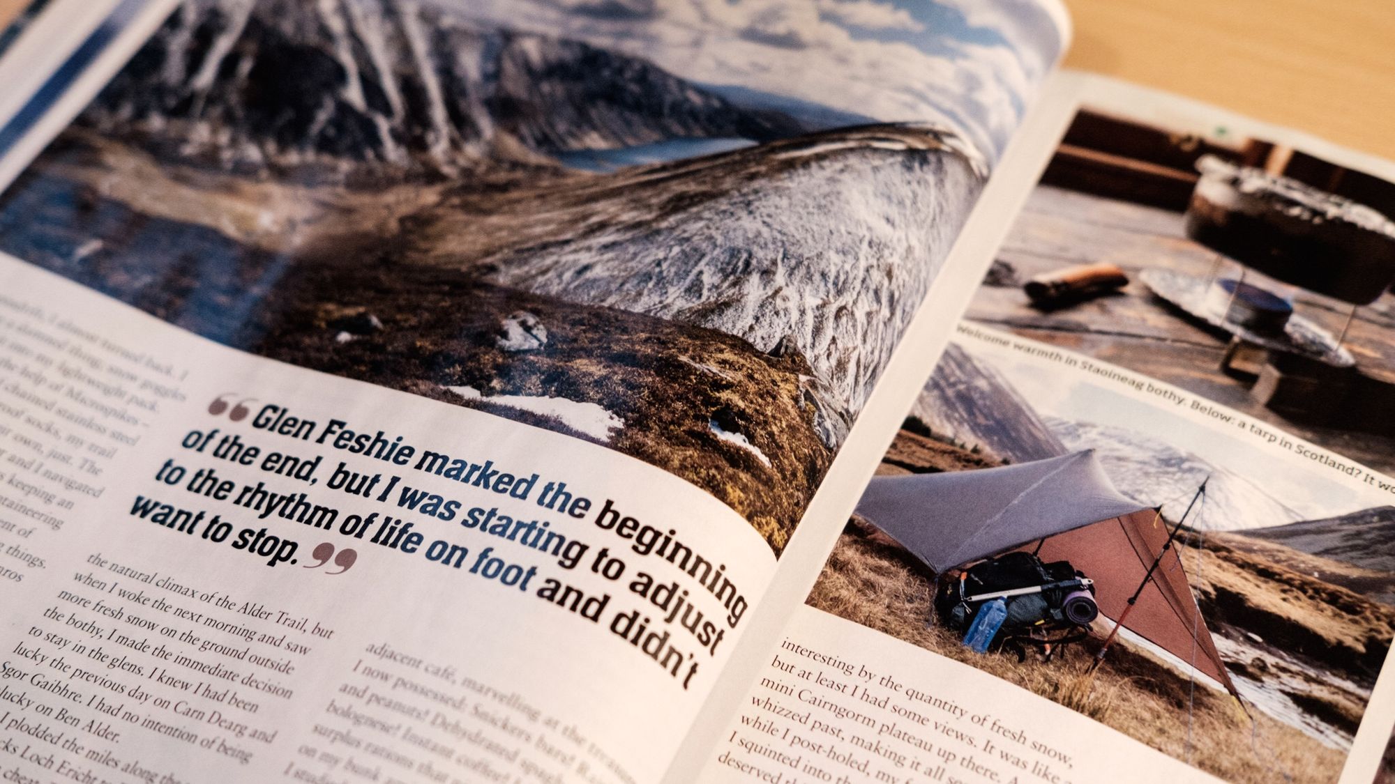 In the November 2016 issue of Trail Magazine, you’ll find my feature on a new 101-mile backpacking route in the Scottish Highlands. The Alder Trail links Fort William with Aviemore via high and wild country. Conceived as more interesting alternative to the East Highland Way, it actually turned out to offer an excellent (and challenging) week in the mountains.