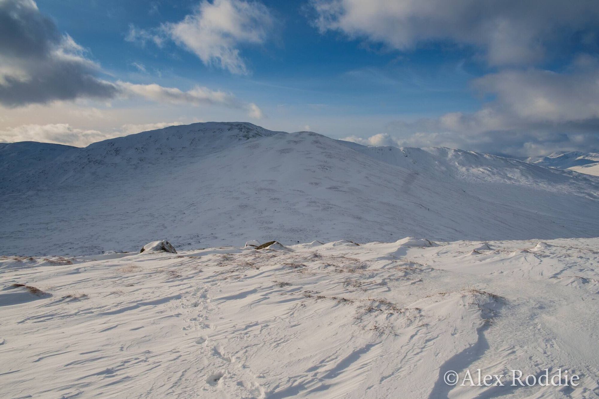 It was a classic – if understated – day in the Scottish hills. These mountains won’t win any awards for fearsome ridges or sublime corries, but they have a solemn dignity about them – and the views over Rannoch Moor did not disappoint. As I climbed the ridge to Carn Dearg, I was captivated by the wind-carved drifts of snow.