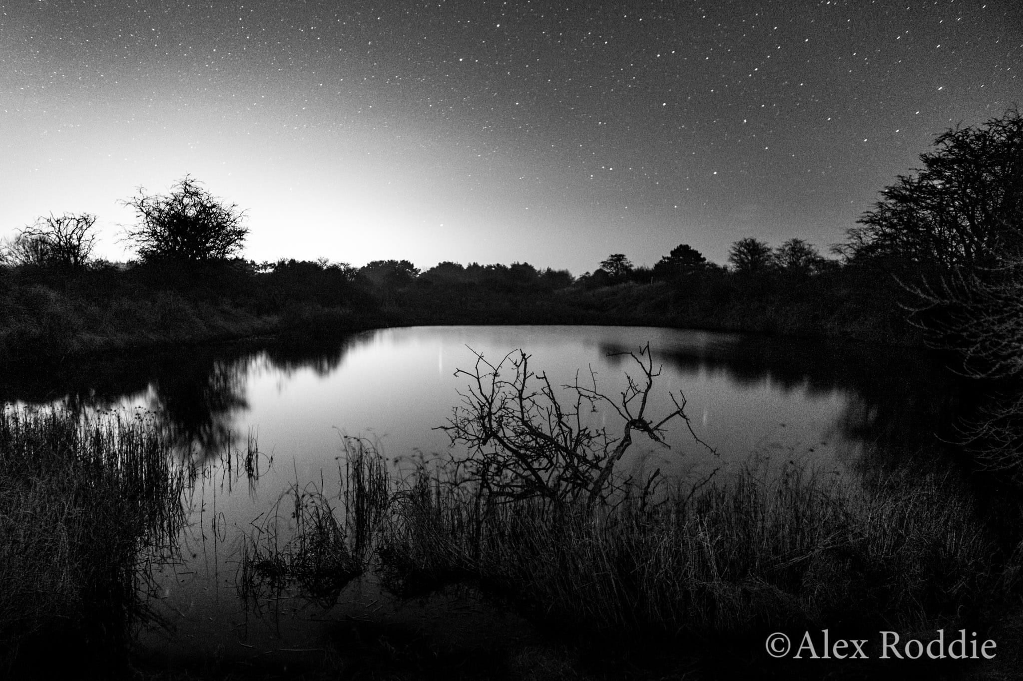 After some wandering around I managed to find an even better location, on the crest of a high dune overlooking the marshes further inland. I pitched the Trailstar and got to work with my camera and tripod.
