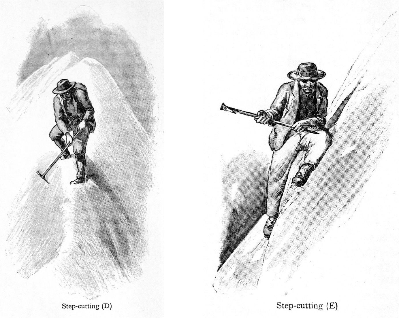 When faced with hard snow or ice, nailed boots alone were almost useless. The climber needed some way of cutting steps.
