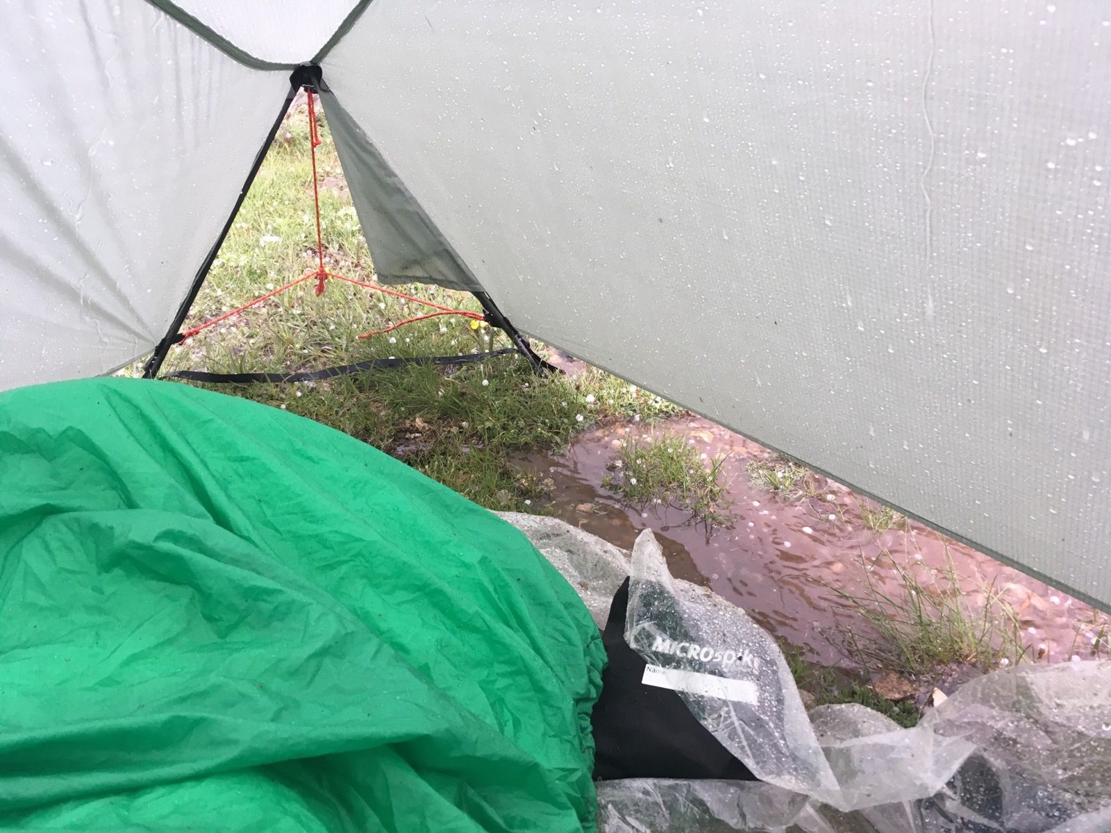I carried the rain skirt to deal with heavier rain, but I never had to wear it. The storms I experienced on the trail all hit late in the evening after I’d already pitched my shelter.