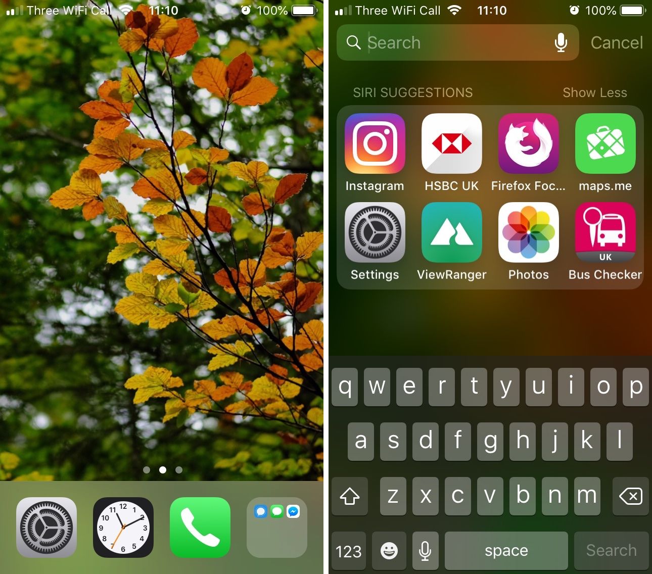 - I keep a minimalist home screen. There are shortcuts in the Dock to Settings, the Clock, Phone, and a folder with three messaging apps (Signal, Messages, and Facebook Messenger – unfortunately I find it impossible to completely avoid Facebook Messenger). There are no other app shortcuts on the first screen; all other apps are in a single folder on a second screen. If I want to access any of these apps, I start a Spotlight search and type in the name of the app. I find this prevents aimlessly opening an app, having a look around, and then closing it again.