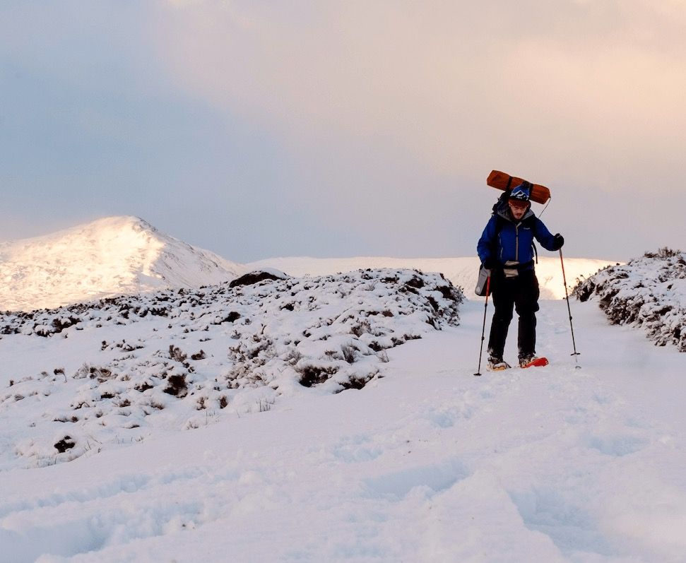 Snowshoes can be brilliant at this time of year. They give you that bit of extra flotation in deep, soft snow, making walking less arduous. Unlike skis, they require no specialist skills to use, although do make sure you buy snowshoes suitable for mountain use (often with some form of built-in crampon or underfoot spikes).
