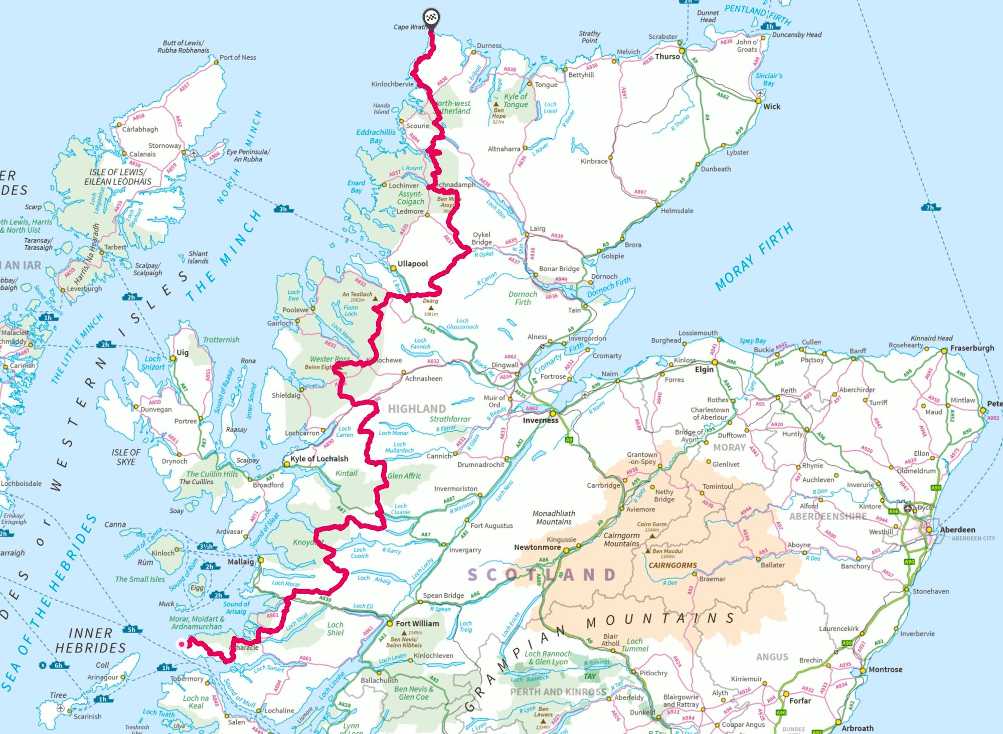 - If conditions permit, I’ll be diverting along major mountain ridges and taking in some Munros along the way. This is very much an optional extra, though!