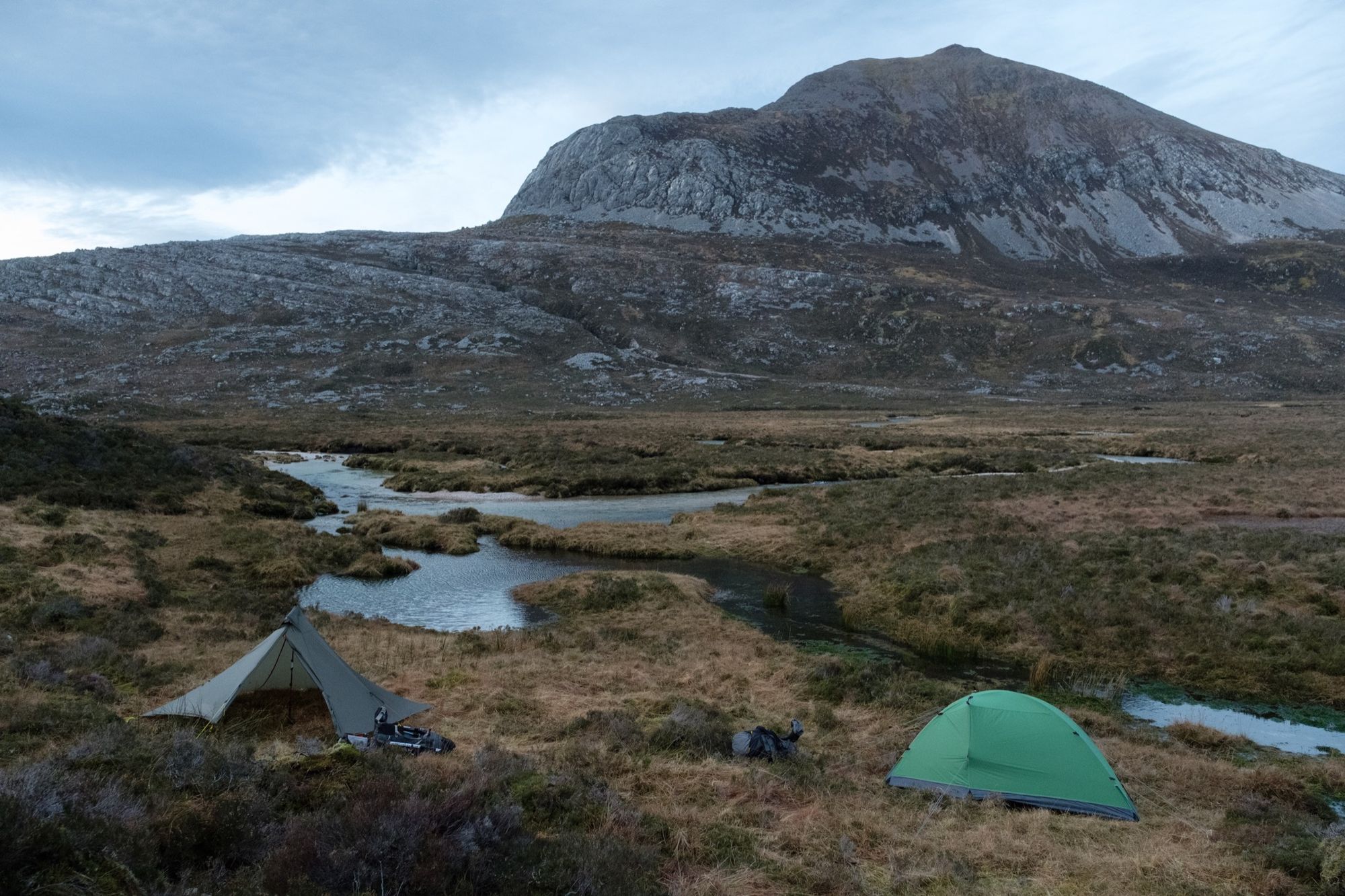 After several days of great weather, I found myself hiking through Assynt with Skye, the only other CWT thru-hiker I met on the trail this year. I decided to stop and pitch early when I found an elevated mossy spot that could hardly be more perfect. I spent about 14 hours at this spot, just watching and listening to the landscape.