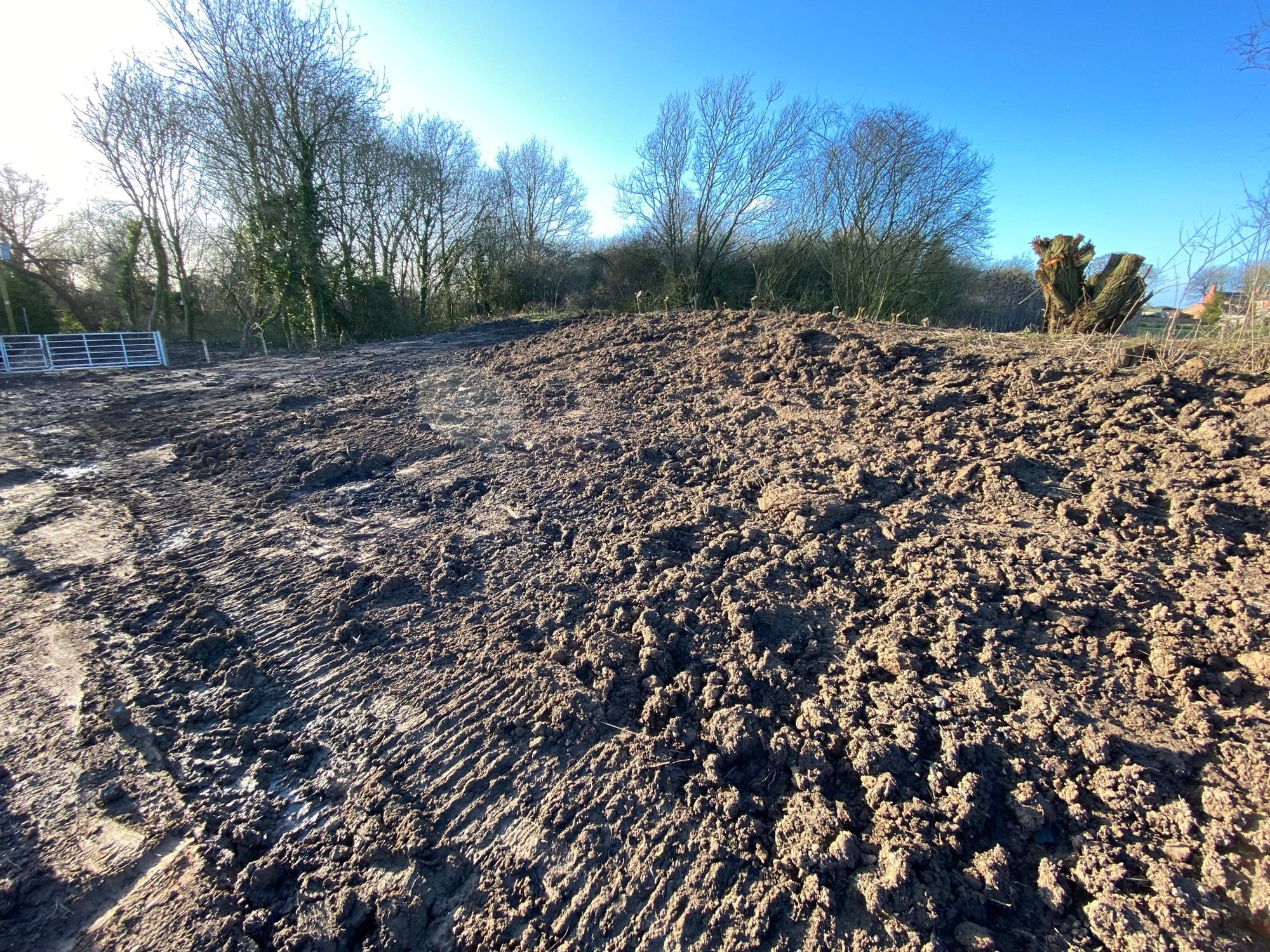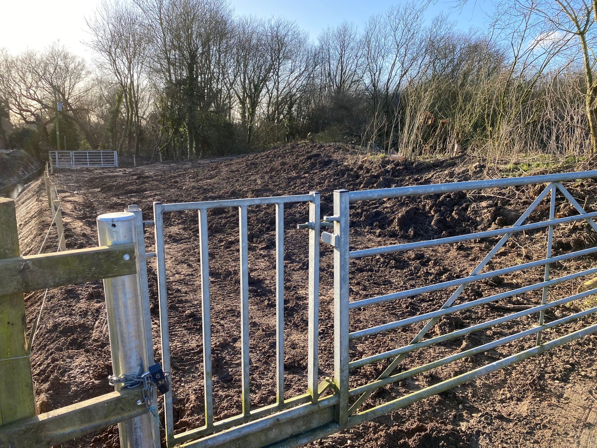 I regularly walk on the public footpaths around Burgh-le-Marsh, and on the 16th of January I noticed that work was being carried out by the Lindsey Marsh Drainage Board on a drain near Gravel Pits Lane. A strip of woodland habitat several metres wide had been destroyed. Since then, the public footpath has been closed, some of the cut wood has been burned, there’s been some earth moved and a new gate has been installed.