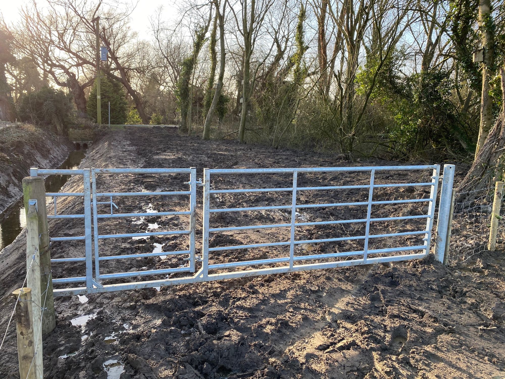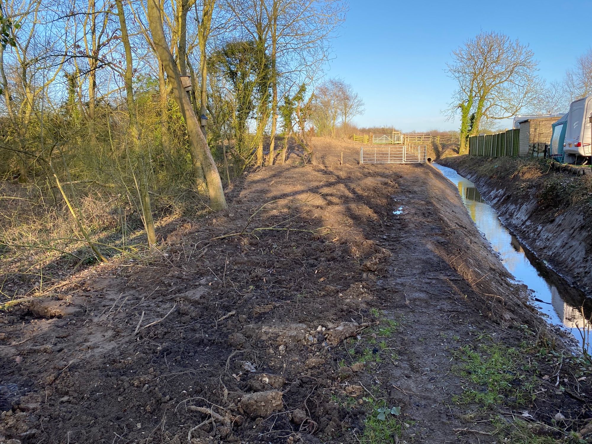 - There’s been quite a bit of landscaping carried out. The drain and bank have both been resculpted. They’ve installed a new wife fence alongside the drain.