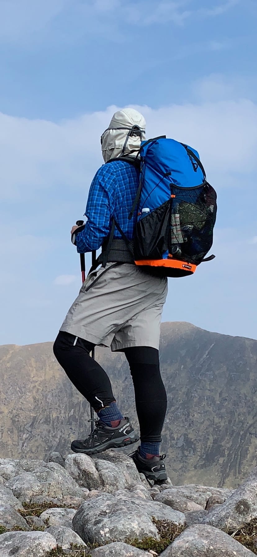 A customised Atom Packs Mo 60 in my signature blue and neon orange would have accompanied me across Scotland. I’ve been very impressed with my Prospector 40, but 40 litres is a bit small for Scotland if I’m out for more than a few days. The Mo 60 would have been ideal, I think, with its stiffened back panel and roomy interior.