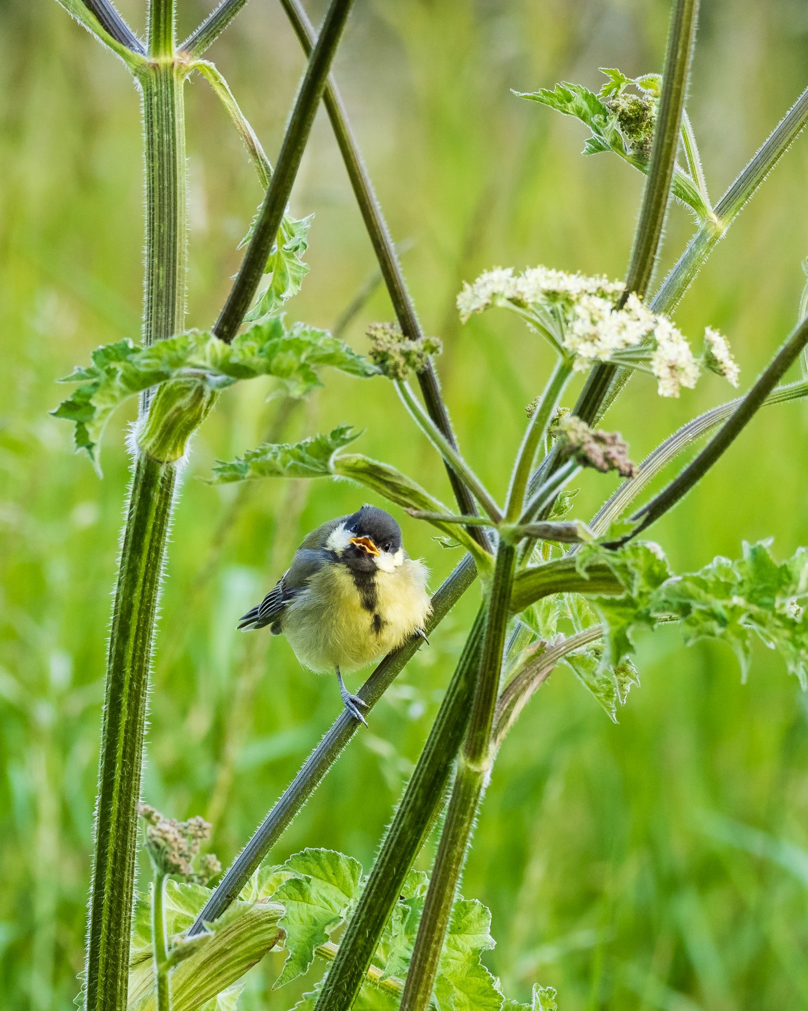 This week, the chicks fledged from several of the nests in Warblerland – notably the great tits and blue tits. It was a pleasure to watch the fledglings hopping about and finding their wings, learning how to hunt for their own food while in many cases still being fed by raggedy parents.