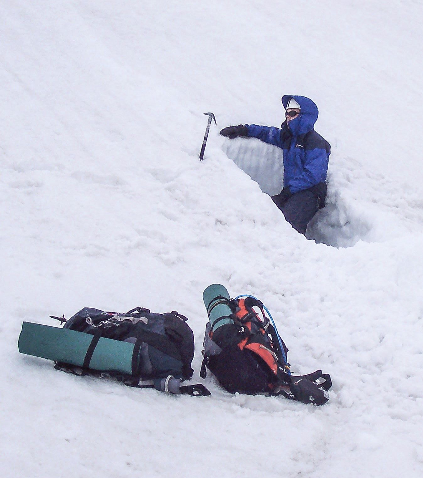 I could hardly stop shivering. The wind howled and another plume of spindrift blasted through the entrance of our snow cave, coating the foot of my sleeping bag and then slowly starting to melt, saturating the already soggy down. Leaving bivvy bags behind had been a rookie mistake. Then again, we were rookies.