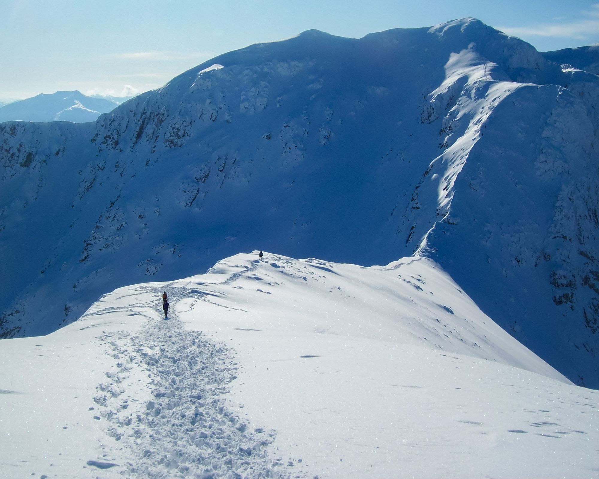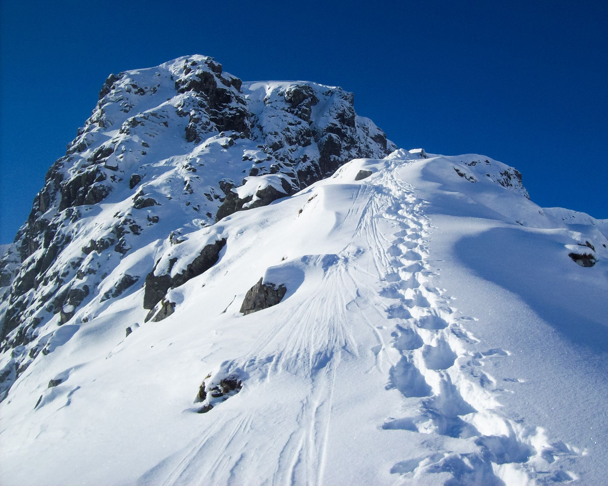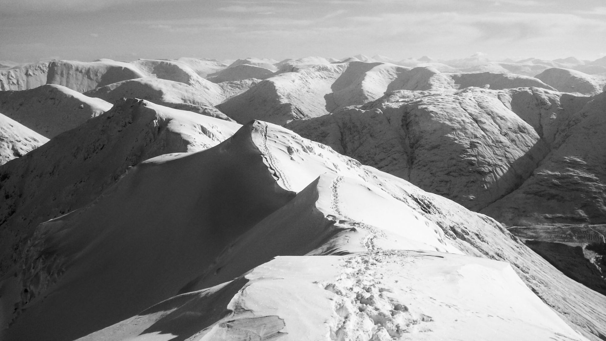 It’s easy to forget, when away from the mountains, just how good winter mountaineering can be at its best. There is nothing in the world like it. The anticipation, the planning, the failures, the gradual accumulation of experience, the obsessive checking of MWIS, the warring pessimism and optimism — and then, when it all comes together, the unsurpassable perfection. Cold air burning in the back of the throat. Clumps of ice hanging from your Dachstein mitts and rattling with every step. Sunrises beyond all powers of human description as layers of colour float upwards and spread over an ethereal landscape that seems to be made of light. The shapes, the textures: drooping cornices, delicate flutings, fractal feathers of rime, hissing tornadoes of graupel. Blue and white, sound and silence. Then reaching the summit and feeling like a god.