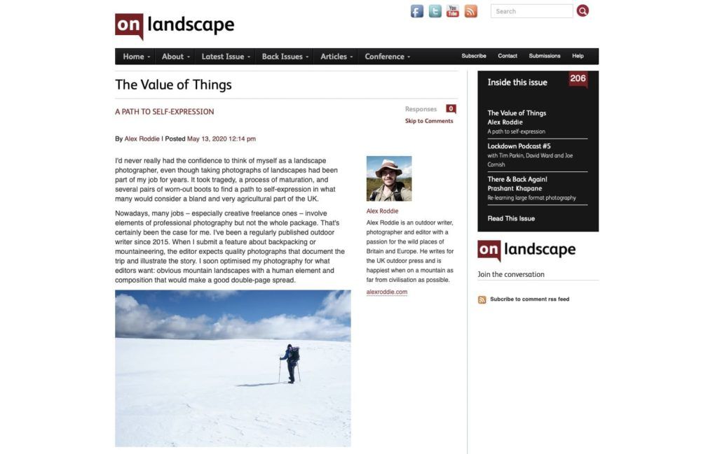 - May 2020: ‘The Value of Things: A Path to Self-Expression’, On Landscape magazine (finding my own style in landscape photography)