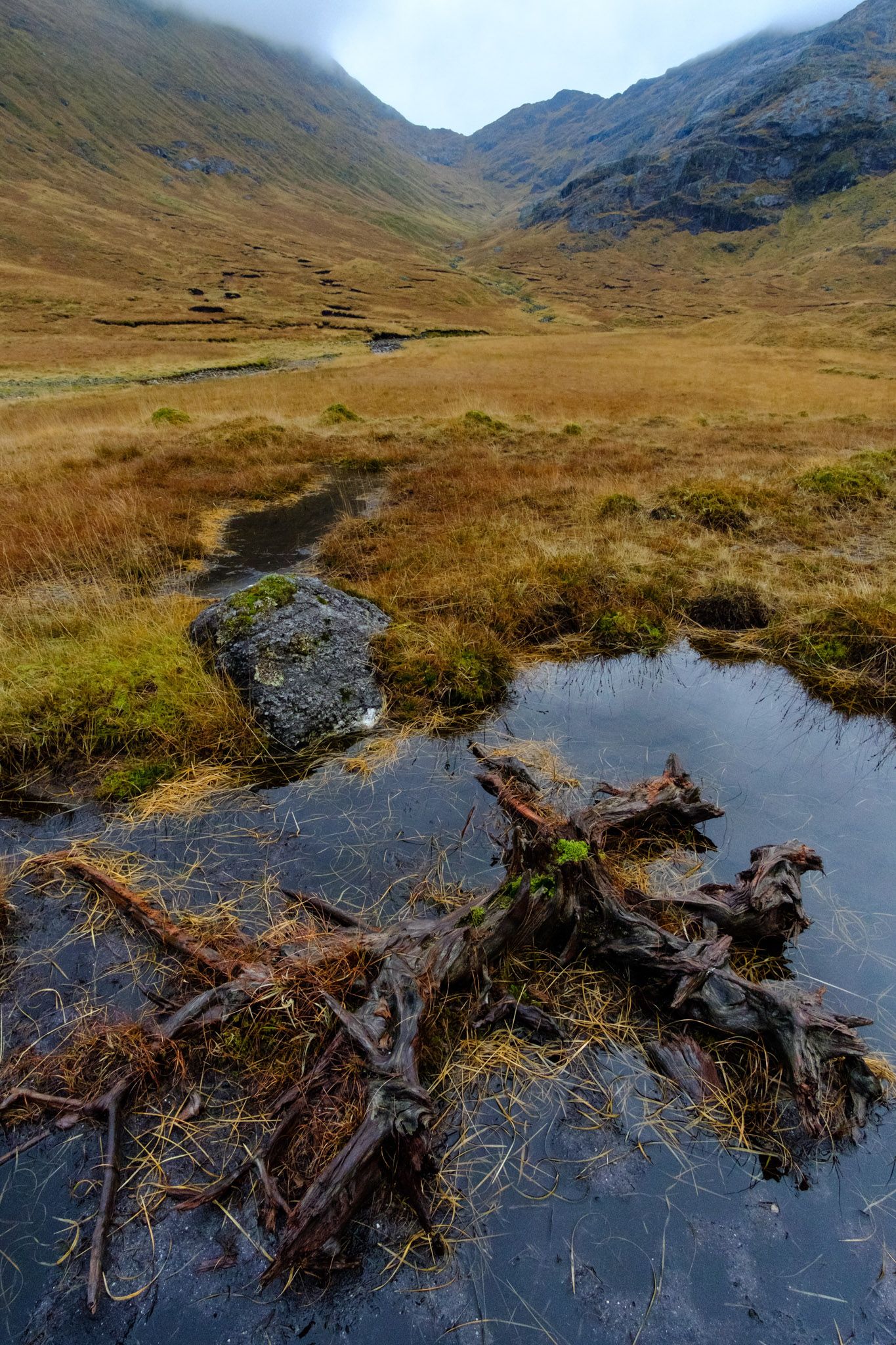 For these reasons and more, ‘Isolation and Connection’ is a special story for me, but I won’t say that it’s the best I’ve written. In it I try to depict the golden glow of Knoydart in that hushed pause between autumn and winter’s full grip, and also the tension between isolation and connection that Knoydart itself depends upon — a tension that those who journey in these wild and high places also depend upon. Knoydart is often described as a wilderness, but of course it’s nothing of the sort; people live there, and millennia of human history are hidden beneath the peat and the forestry plantations. Such is the story of all Scotland’s landscapes, but I think that in Knoydart, where the Clearances bit so savagely and hope for the future now burns so brightly, it’s most poignant of all.