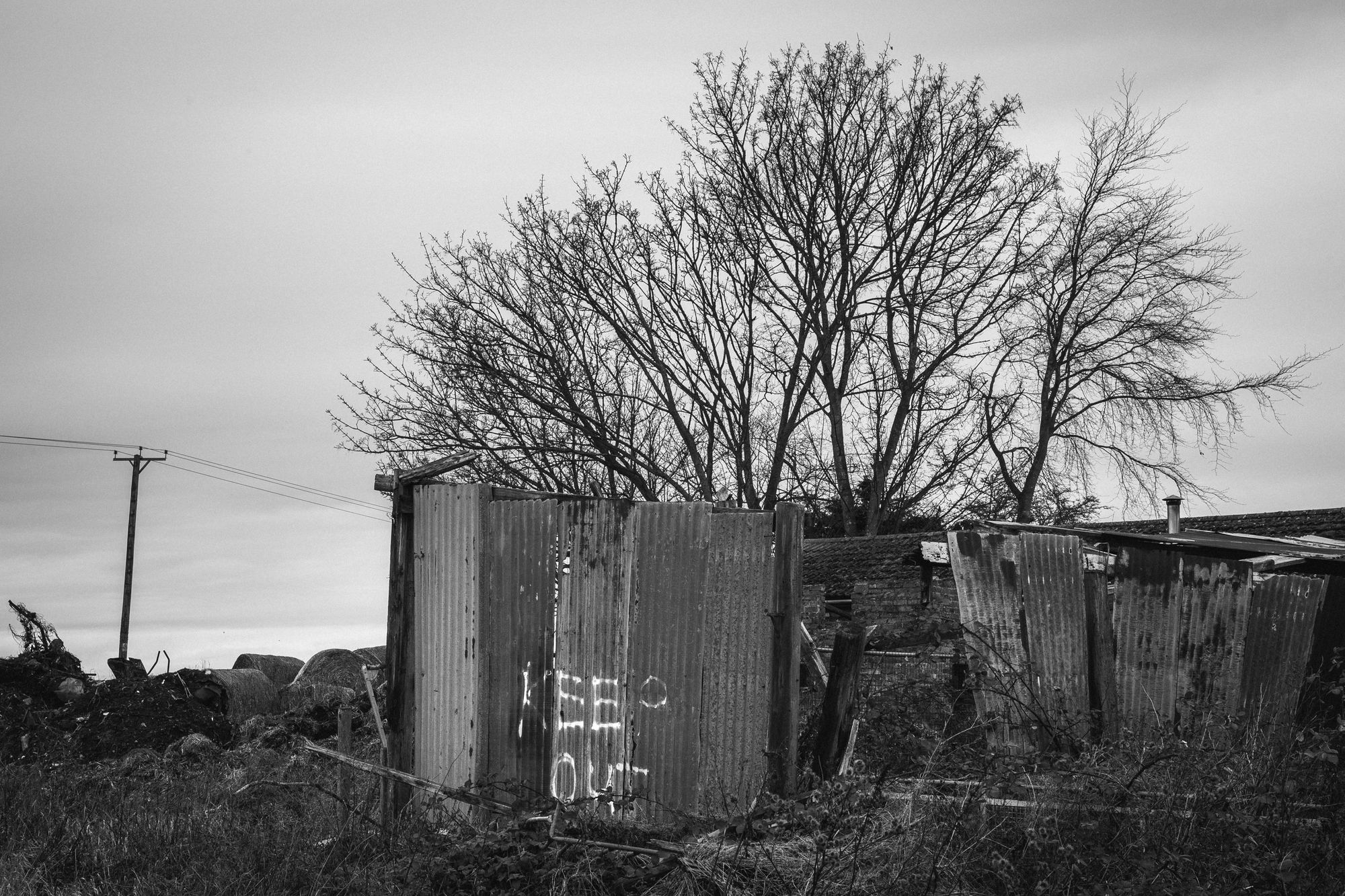 When it's January and the wind is howling in off the North Sea, and all colour is leached from the land, and the wires hanging from crooked telegraph poles are swaying, you can feel it. When the horizon is a grim line defined by flail-cut hedgerows and flooded fields, it's there. When you pass sign after sign saying 'NO ACCESS' and 'KEEP OUT', when a stunted ash tree has tried and failed to grow out of a mound of decaying hay bales, when you see the withered skeleton of a fox impaled on the thorn tree by the farmer, you can feel it powerfully. And it is there perhaps most of all when you turn your back to the sea but you can still sense it – that future time (perhaps not so very far in the future) when the sea will breach the defences once again and reclaim the land that was once marsh.
