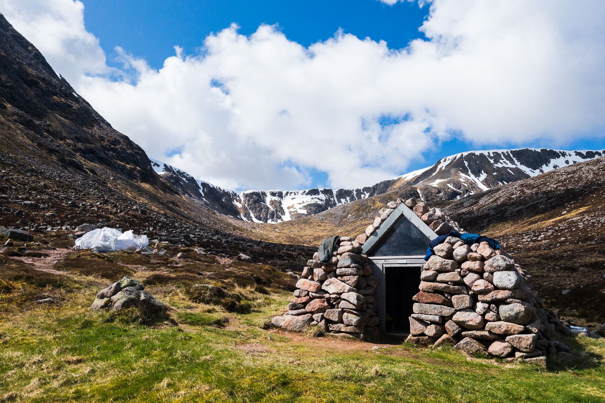 I made good time to the Garbh Choire refuge – an approach I last made in 2010, and I remember it being a good deal rougher and wetter then than I found it on Friday. The refuge has been rebuilt recently and is now quite a contrast to the grim hovel I stayed at in 2010. Nearby I met some contractors working for the NTS, planting downy willow saplings on the crags above the refuge, where they had been staying for four days. 'Enthusiastic but a bit ragged' is how I later described them to a friend. It's good to see people working hard for nature in places such as this.