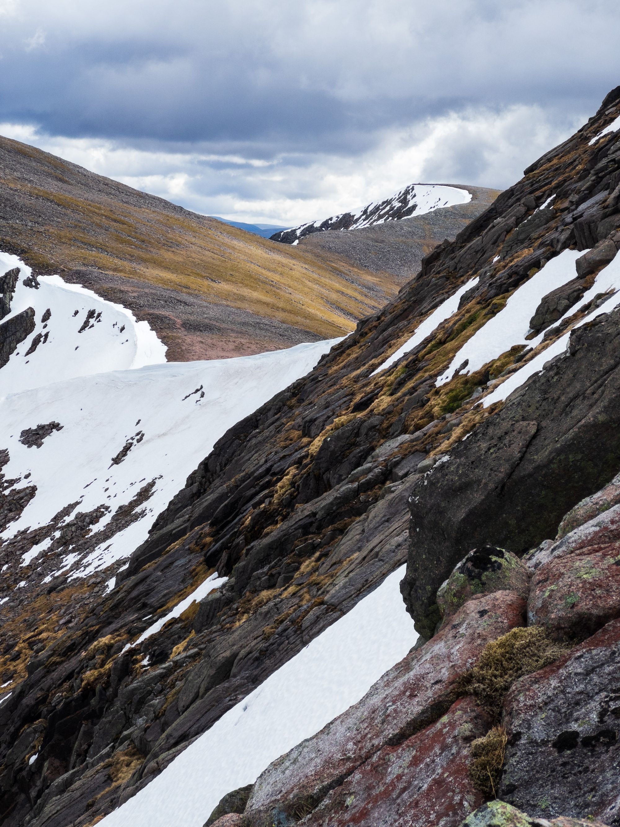 The scramble was an absolute delight. What a ridge! Easy and sprawling to begin with, before becoming more defined with some steady Grade 1 scrambling (plus some optional harder bits). It would be a fine adventurous mountaineering route in winter conditions. Views across to the Braeriach corries were marvellous, but again I was struck by how little snow I could see compared to every single one of my previous May or June visits.