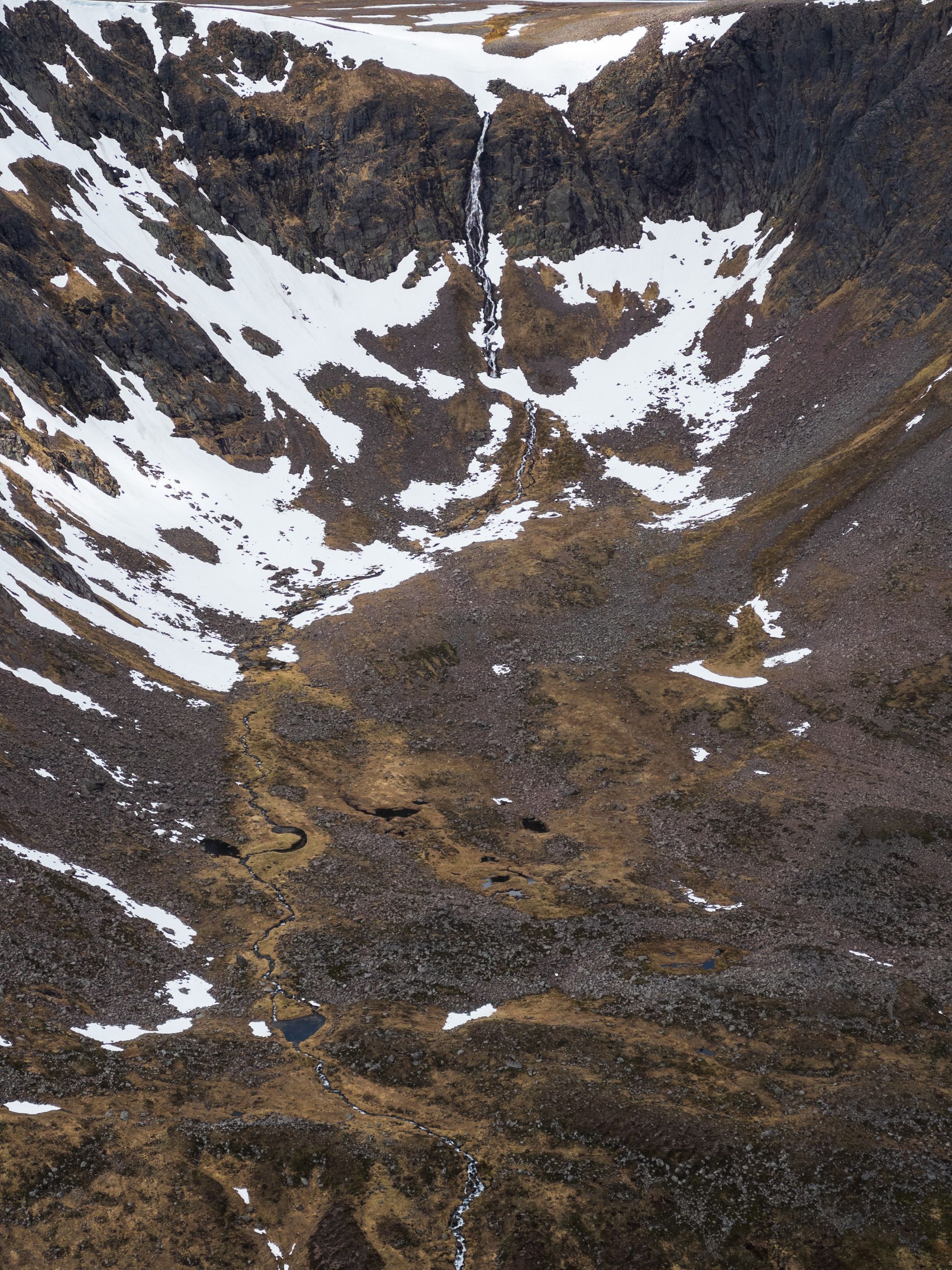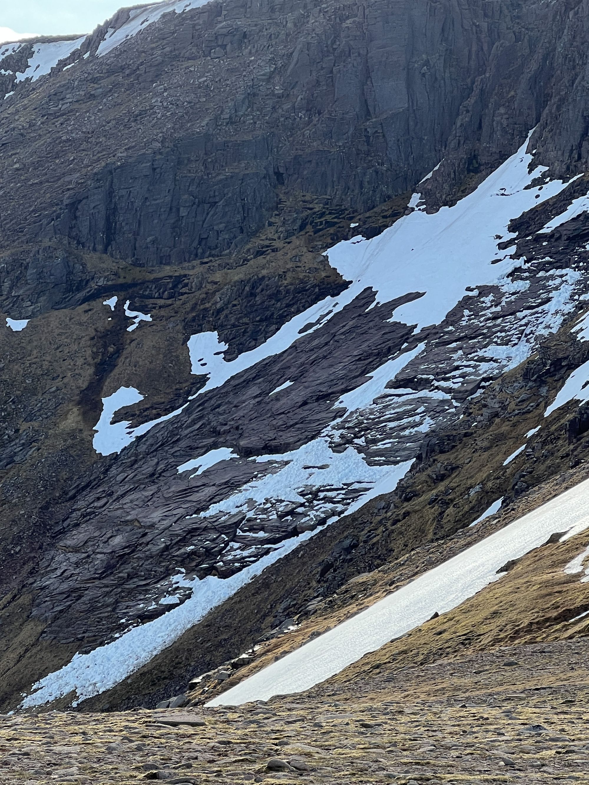 A few early birds were on their way up the path to Macdui as I was coming down. Everyone was full of excitement at the amazing weather. Passing Coire an Lochain, I noticed that the Great Slab had avalanched, as it usually does in May – but it clearly hadn't held much thickness of snow even before it had gone. I have seen avalanche crown walls on the Great Slab showing double or triple the thickness of snow I saw yesterday.