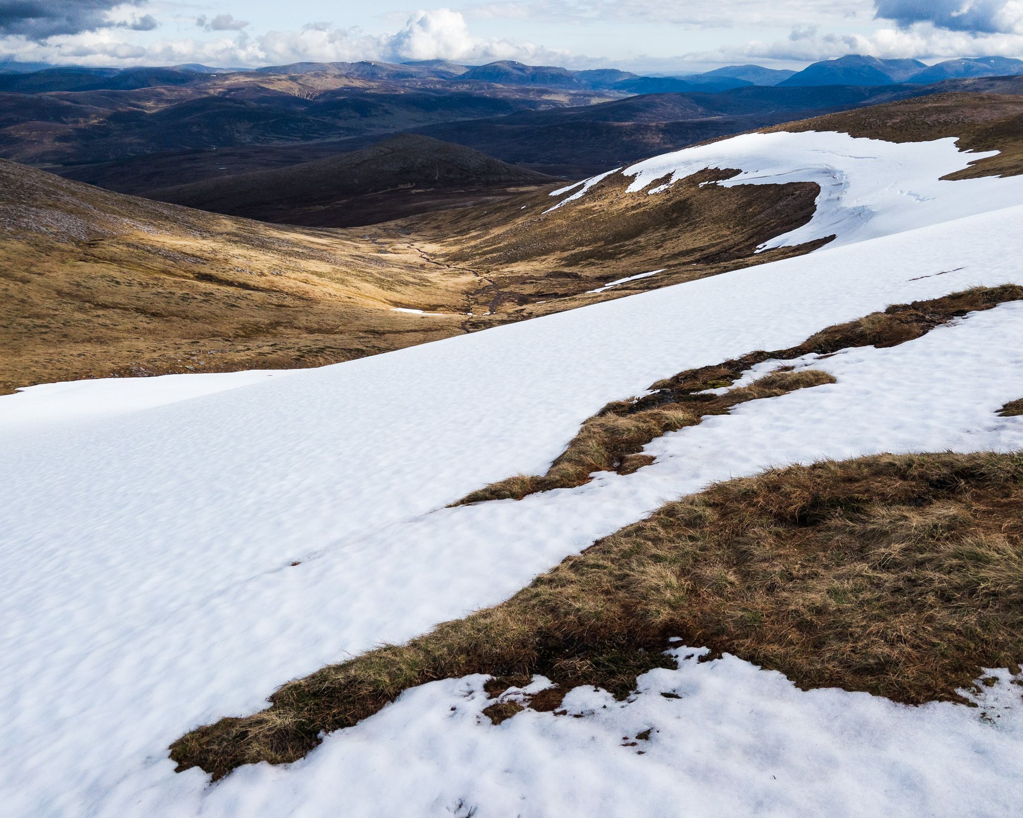 The next morning, I woke to find a tent pitched only about 200m away – I assume they'd been there when I arrived the previous night! At 6am I found myself strolling over the newly frost-crisped summit snow slopes of Macdui, enjoying that amazing panorama west to all the major peaks south of Braeriach. Honestly, what an incredible place – what a gift. This was my fourth or fifth time on the summit of Ben Macdui, but easily the best conditions I've ever seen there. I've heard Ben Macdui called 'boring' by some people before. If you find this mountain boring then I might respectfully suggest that hillwalking isn't for you.